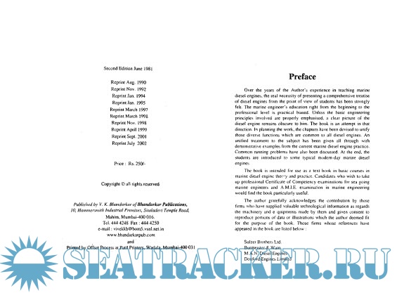 Description: The book is intended for use as a text book in basic courses in marine diesel engine theory and pratice. Candidates who wish to take up professional Certificate of Competency examination in marine engineering would find the book particularly useful.