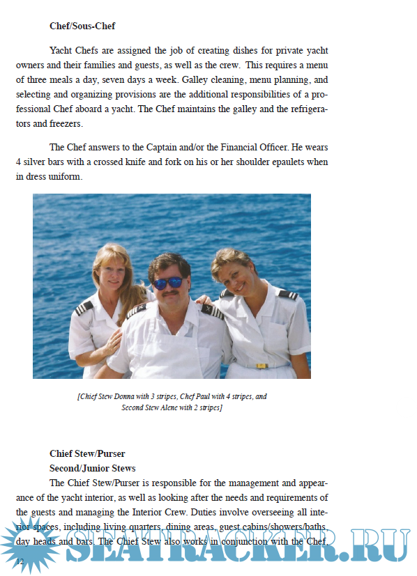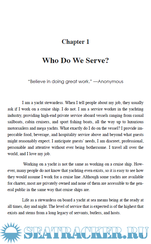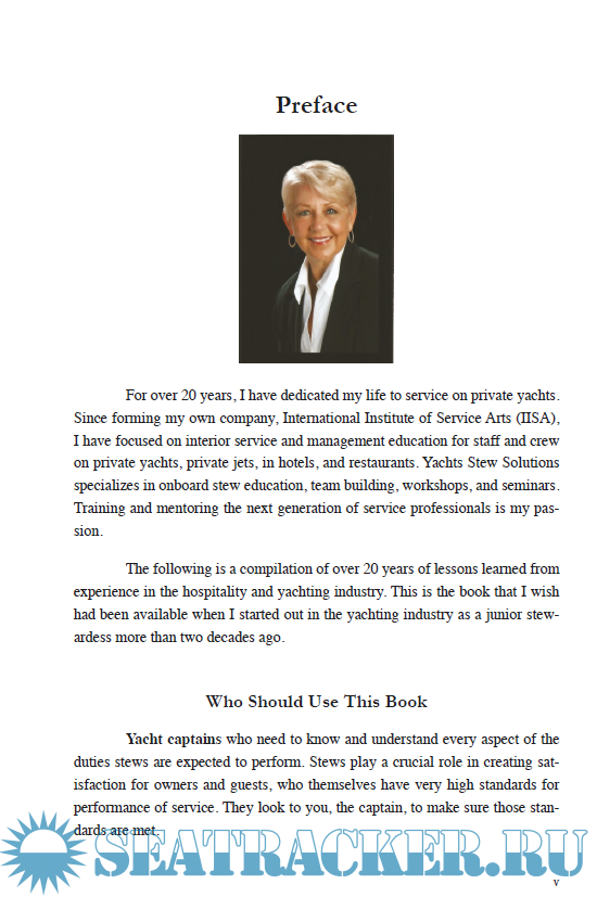Year: 2015 Language: english Author: Alene Keenan Genre: Handbook Publisher: CreateSpace Independent Publishing Platform Edition: 2nd edition ISBN: 978-1523651146 Format: PDF Quality: eBook Pages count: 252 Description: In THE YACHT GURU'S BIBLE, the author provides practical tips and guidelines along with insider knowledge from many years at sea as a Chief Stewardess. Photos, illustrations, schedules, checklists, and more will teach you tips and tricks to excel at service on any luxury yacht. You learned how to get that first job, now learn the essentials to not only professionally succeed but to also live the life of your dreams. -- B&W ILLUSTRATIONS AND PHOTOS -- Latest Training Requirements -- Rosters and schedules, checklists, illustrations and more -- Inside Scoop of What It's Like to Be a Yacht Stew -- Detailed Instructions to Help Develop Your Service Skills Publisher's Note: This is the B&W version of the print book. As a yacht stew for over 20 years, the Keenan has traveled the world and served as Chief Stewardess on world-renowned yachts, providing yacht owners and charter guests with the most memorable holidays imaginable. Learn what it takes to raise your service skills to the next level including French and Russian style Silver Service, Order of Service and Service Etiquette, Wine and Cocktails, Basic Napkin Folds, Laundry and Housekeeping skills, even Nautical Terminology for Yacht Crew.