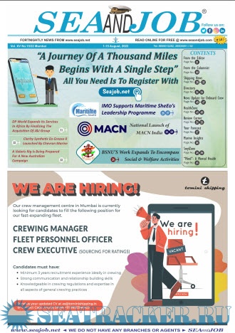 Description: The Sea and Job magazine launched in May 2007, was the second venture of Sea Line Group succeeding 'seajob.net' bringing the much renowned essence to the Group, the Sea and Job Magazine quickly gained popularity, becoming the No. 1 Shipping Magazine that came to be widely circulated all over India. Sea and Job over the years has evolved as the most trusted, ethical, objective and read maritime publication that possesses a large database of subscribers from various verticals in the industry.The magazine provides informative and interesting articles covering not just the shipping world but also the world outside it.Sea and Job is also a medium for the shipping/ manning companies to advertise marine jobs and also to promote their organization by publicizing internal activities like seminars, sports events and parties.Some notable endeavors of the magazine include the Know Your Recruiter Column, the Sailing Episodes Column and the Marine Insights section. The consistent efforts and the dedication to provide extraordinary services to the industry has resulted in the magnifying popularity and patronage of Sea and Job.