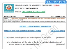 Question Paper Set for Celestial Navigation (August 2022) for Second Mate (F.G.) Mercantile Marine Department (MMD), India Examinations
