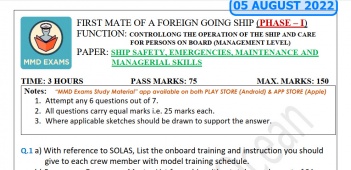 Question Paper Set for Ship Safety & Emergencies (August 2022) for Phase I (Chief Mate F.G.) Mercantile Marine Department (MMD), India Examinations