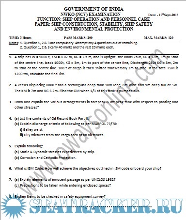 Question Paper Set for Ship Construction, Stability Ship Safety and Environment Protection (August…