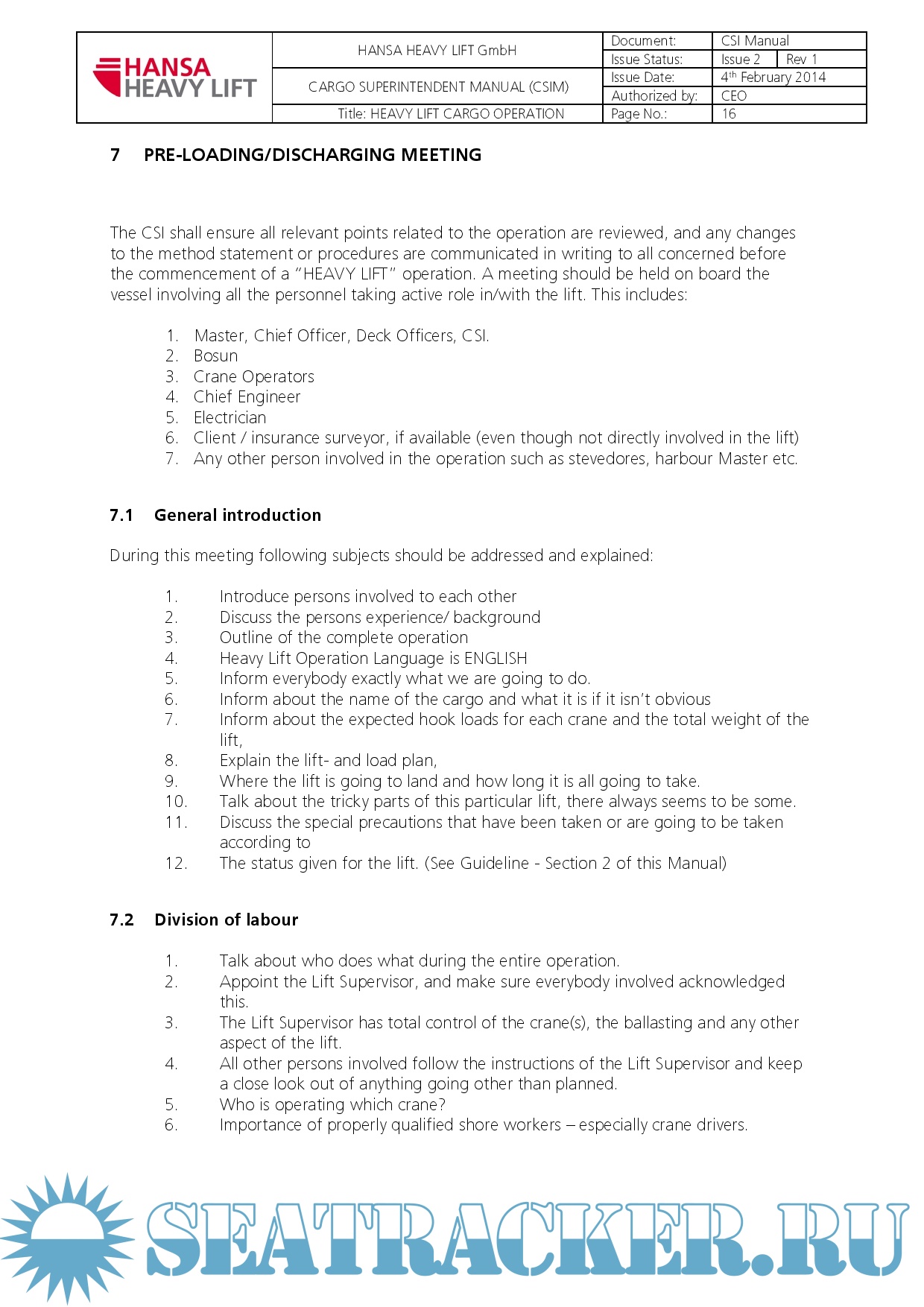 HANSA HEAVY LIFT - CARGO SUPERINTENDENT MANUAL (CSIM)