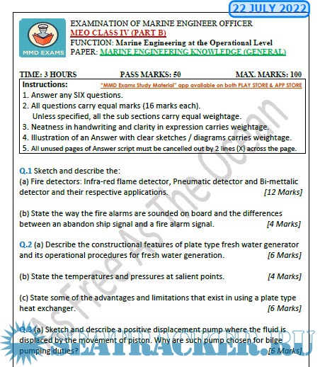 Question Paper for Marine Engineering Practice (M.E.P.) (updated July 2022) for M.E.O. Class IV…