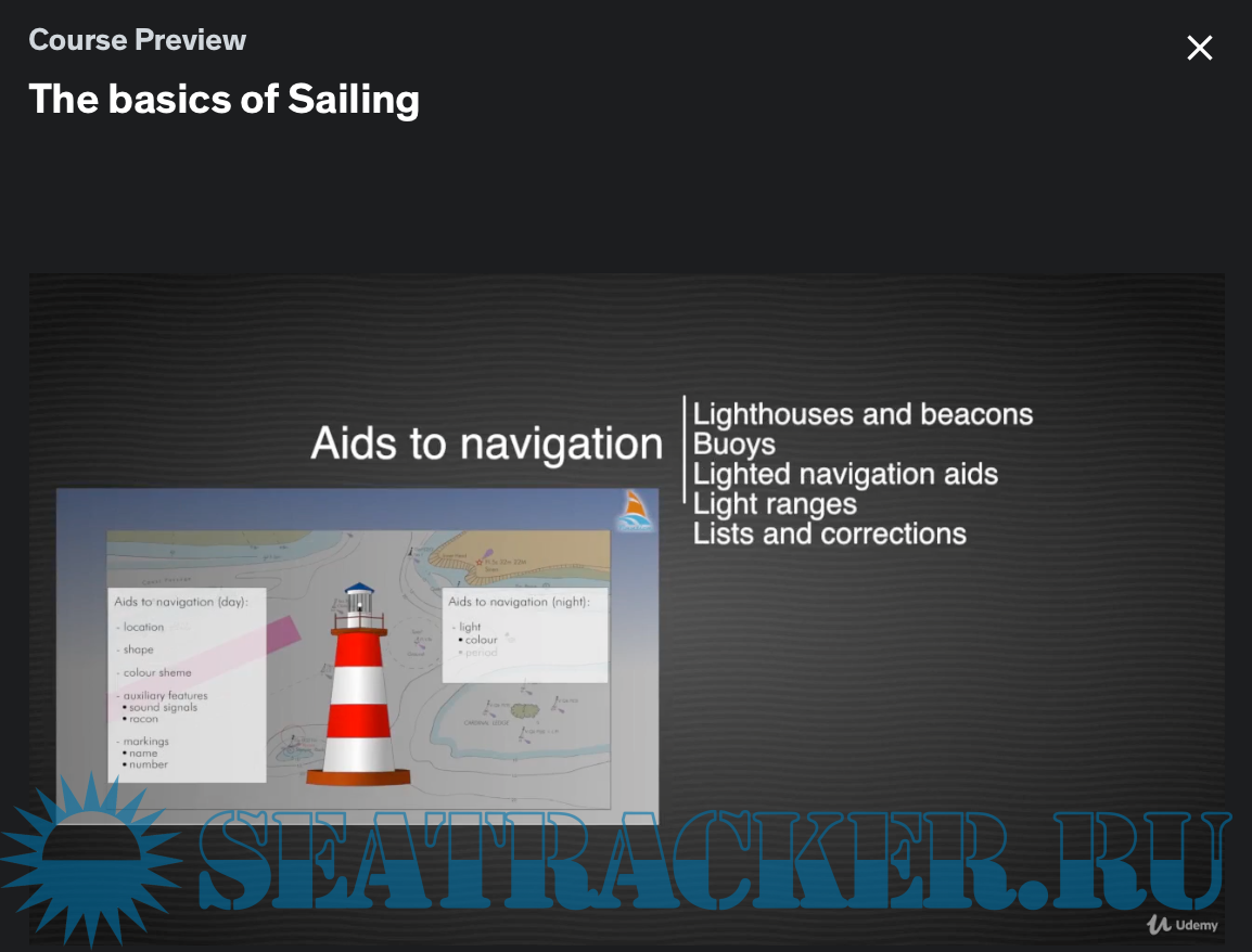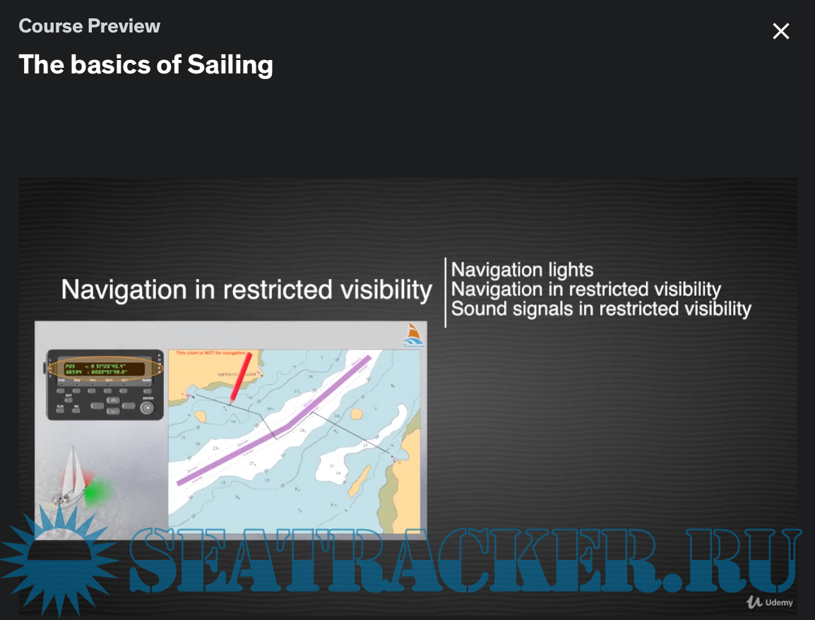 Year: 2018 Language: english Genre: Udemy eLearning Video Playtime: 8 sections • 39 lectures • 4h 27m total length + SRT Quality: HD Format: MP4 Video: H.264 1280x720 30 fps Audio: AAC 48.0 KHz x 320 Kbps Description: Sailing the open seas is the ultimate freedom! Wide skies, fresh air, camaraderie, it’s all there for you and our course can help you to get it. This is probably the most complete, interactive, engaging, and fun, sailing course ever made. Imagine an entire interactive, highly organized, library of sailing knowledge at your fingertips whenever you want it! Created for beginners, intermediate, and advanced sailors - all wrapped up into one.. Course includes more than 300 animations with voice over in English Lessons are in Full HD quality and covers all the main maritime subjects. Who this course is for: Sailing the open seas is the ultimate freedom! This course can help you get it! It's useful to anyone who is interested in sailing. What you'll learn: Course is designed to provide up-to-date, engaging information and instruction about all the vital aspects of sailing. Students will be able to understand basic knowledge of safety, coastal navigation, tides and currents, aids to navigation, buoyage system, navigation in restricted