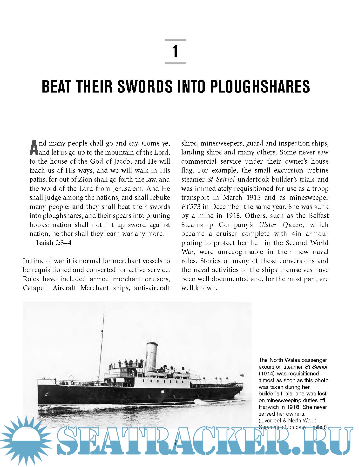 Year: 2021 Language: english Author: Nick Robins Genre: History Publisher: Seaforth Publishing Edition: 1st ISBN: 9781399009591 Format: PDF Quality: eBook Pages count: 178 Description: From War to Peace tells the story of the adaptation from White Ensign to Red Ensign, and to flags of other nations, of the numerous classes of naval ships mainly built during the two world wars and surplus to requirements with the advent of peace. It also describes ships sourced from the United States Navy and elsewhere that were converted for commercial use. Copiously illustrated throughout, the book tells a fascinating story of invention and ingenious ship conversion, and of pragmatic adaptation in the financially stringent years after two world wars.