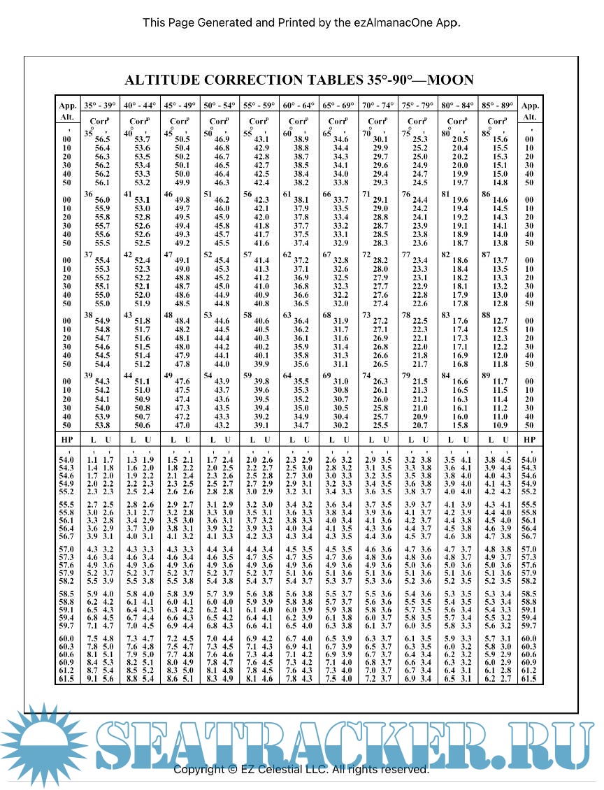 Description: Complete 2022 and 2023 Nautical Almanacs including all daily pages, the Pole Star Tables, and all interpolation and correction tables available in the official Nautical Almanac. Everything you need to find the GHA and Declination of the observed body, correct your sextant altitude observation (Hs) and produce the observed altitude (Ho) needed for the sight reduction, and determine solar system event times.