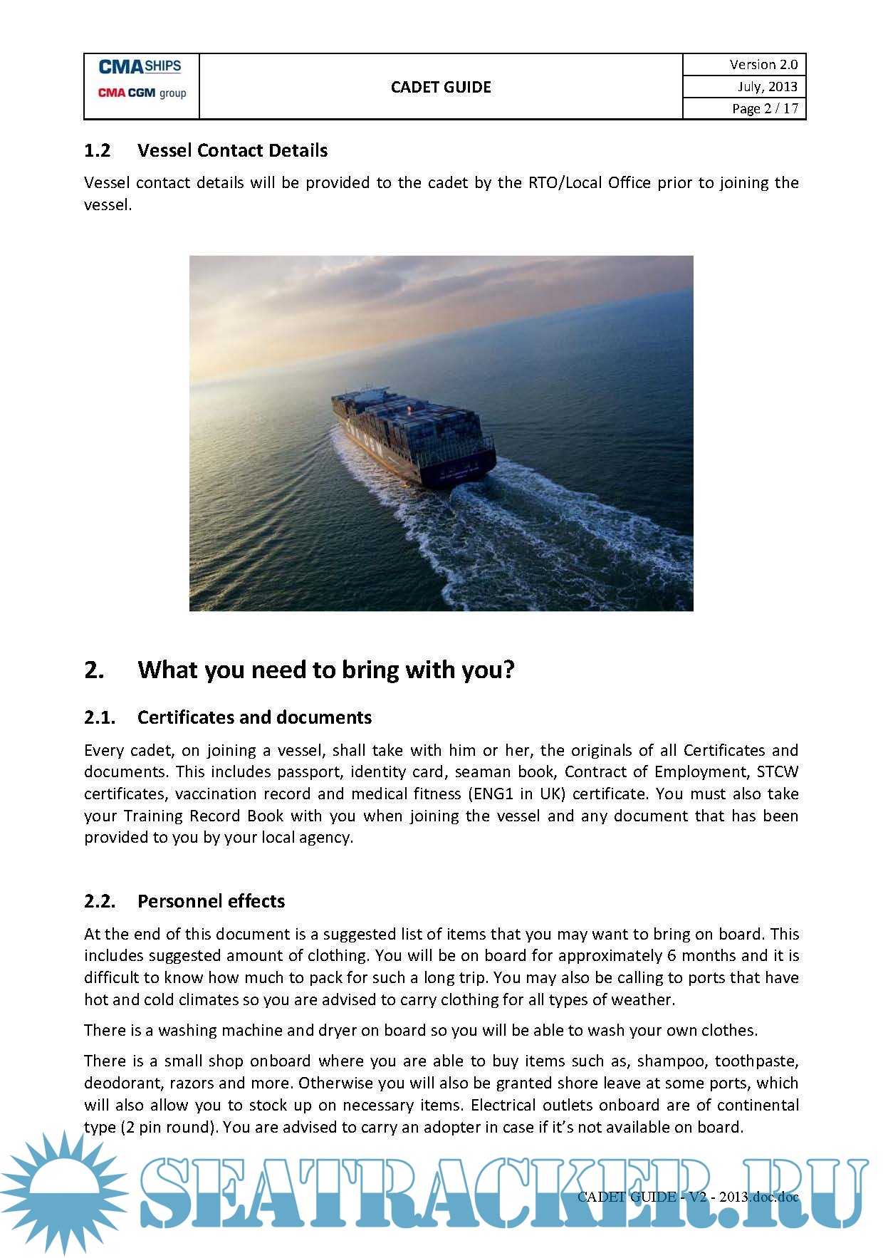 Description: May be you will soon be joining a CMA CGM vessel to carry out your training at sea. This guide gives