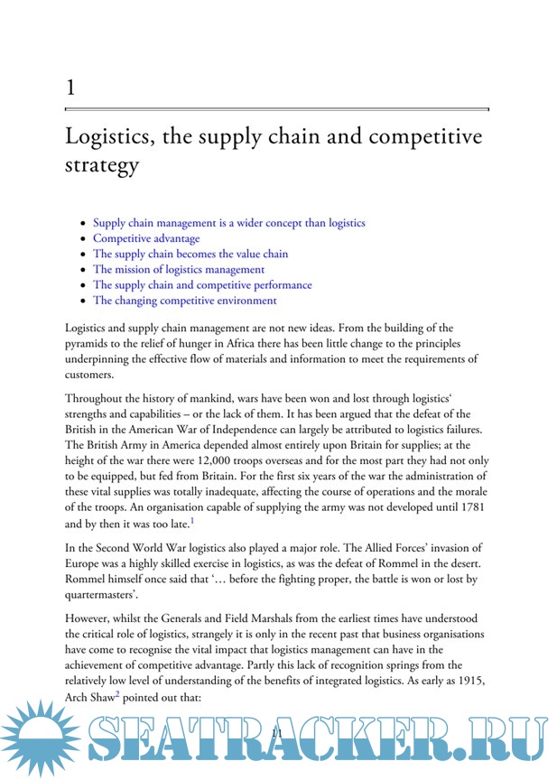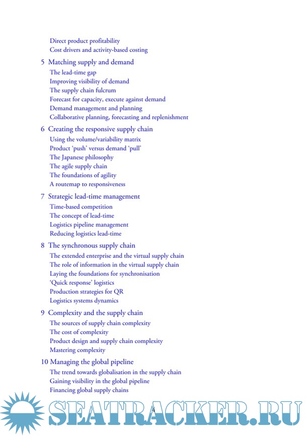 Year: 2016 Language: english Author: Martin Christopher Genre: Textbook Publisher: Pearson Education Ltd. Edition: Fifth ISBN: 9781292083797 Format: PDF Quality: eBook Pages count: 350 Description: This edition is the newest edition of a best-selling book on logistics and the supply chain, written by the international guru on the topic, Dr. Martin Christopher. It is the UK's bestselling book on logistics and supply chain management with over 100,000 copies sold. When the first edition of this book was published back in 1992, supply chain management as an idea was still in its infancy and relatively few companies had made it a priority. The same was true for logistics management, although its precursor, distribution management, was increasingly being recognised as important, both in terms of cost and for its potential impact on sales. In the intervening years from the first to the fifth edition, many things have happened. Firstly, there is now a much greater understanding of the role that supply chain management plays in creating competitive advantage. Whereas previously the focus was primarily tactical with a concern for optimising costs, now there is much more of a strategic focus with the emphasis on value creation and delivery. The second major change is the recognition that supply chain management is not just an extension of logistics management, but rather that it is about managing relationships across the complex networks that today's supply chains have become. A third significant change over that period is that the business environment has become a lot more volatile and hence less predictable. This transition from a relatively stable world to one that is much more turbulent requires supply chains to be capable of changing rapidly to meet changed circumstances. These changes are reflected in the additional material included in this 5th edition. Thus, complexity management and the challenge of making the transition from a forecast-driven to a demand-driven business model are given greater emphasis. Effective development and management of supply chain networks helps businesses cut costs and enhance customer value. This updated 5th edition is a clear guide to all the key topics in an integrated approach to supply chains. As well as new and updated examples and case studies, there are also the following two new chapters: (1) Routes to Market: Many companies now have to manage multiple distribution channels. This chapter covers strategic issues on how companies "go to market" along with the cost implications of using alternative channels, and (2) Service Logistics: As companies begin to sell performance rather than physical products, this chapter explores the implications for logistics management as the need to provide higher levels of service and customer support becomes ever more critical. This book is a classic textbook for many Universities in the field of “Logistics and Supply Chain Management” in which shipping of goods by whatever means is involved.