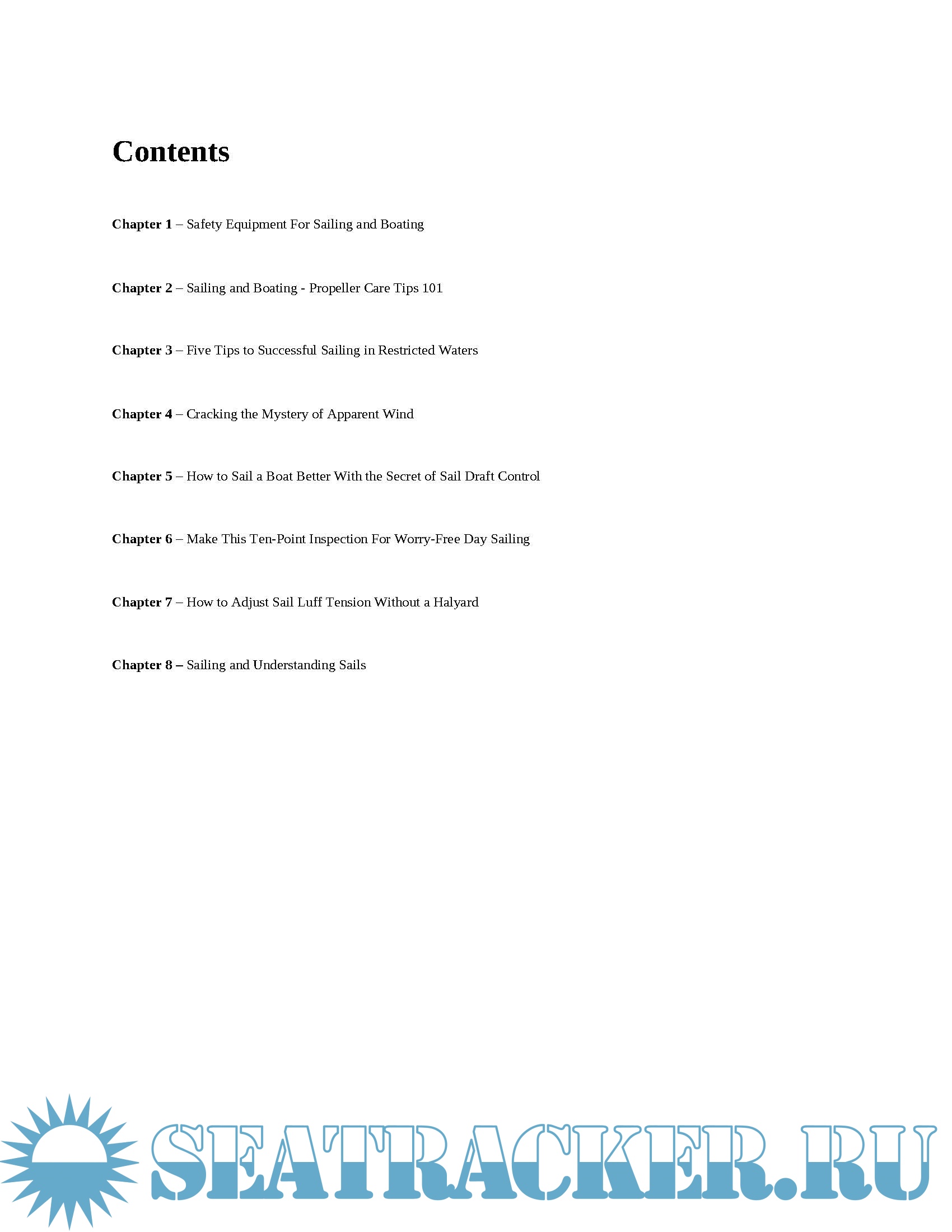 Year: 2019 Language: english Author: Matilda Gardner Genre: Handbook Publisher: Themeworks Production Edition: First Format: PDF Quality: eBook Pages count: 30 Description: If you are anything like me, you are anxious to get away from the dock and go out for a day’s sail and learn how to sail a boat even better than before. But wait, you might be forgetting the most important part of sailing: Preparation. How many times have you been out sailing and the luff on your mainsail or headsail begins to sag, or show scallops after the breeze picks up? This often means a trip to the mast to tension the halyard. But did you know you can do this without a halyard? Before you even think of casting off, you need to make sure that you go through these basic checklists in this book.