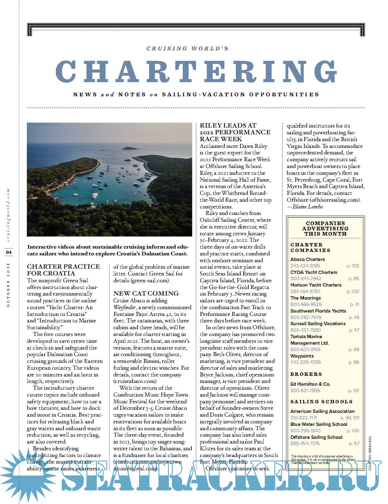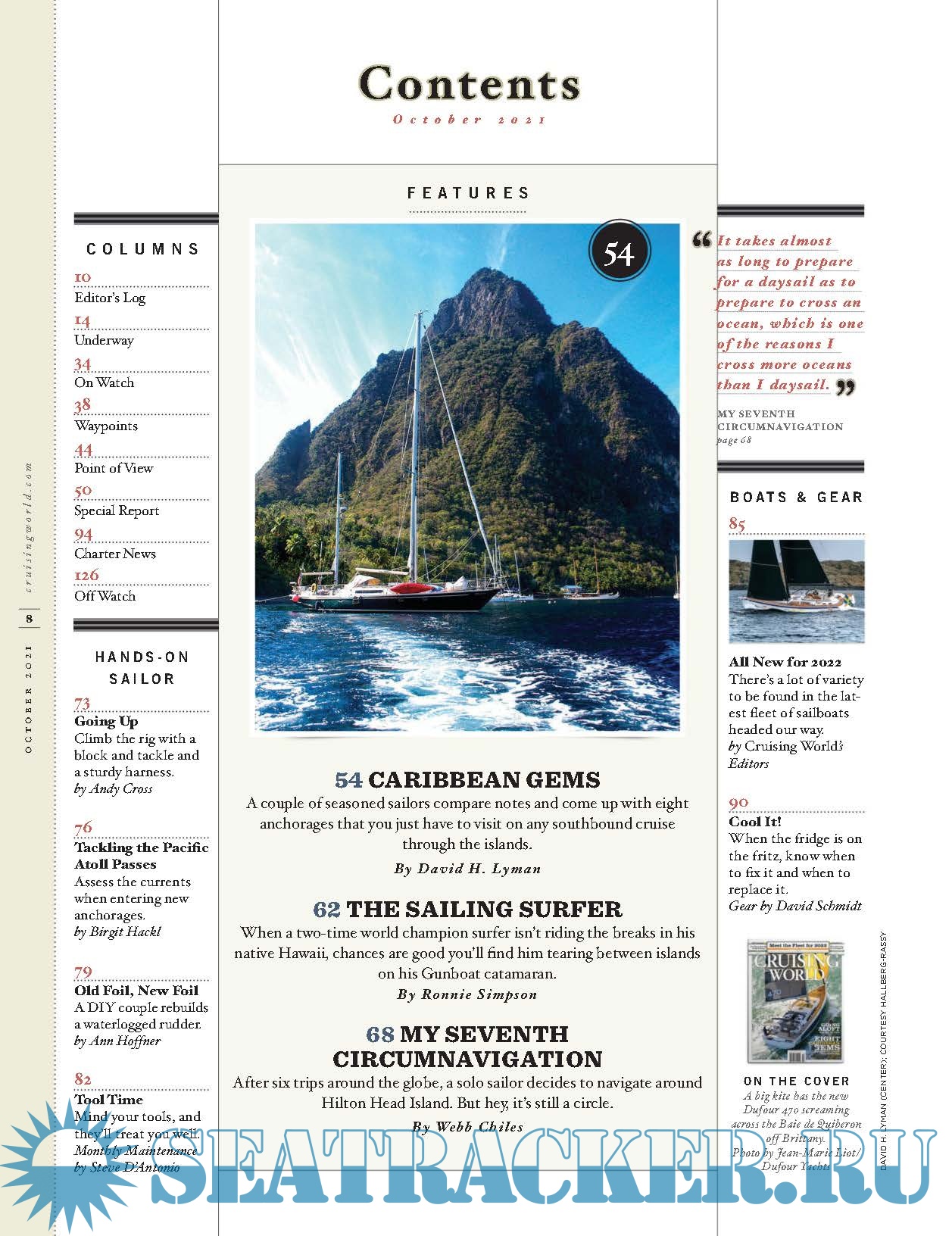 Year: 2021 Language: english Author: Editor Mark Pillsbury Genre: Periodical (magazine) Publisher: A Bonnier Corporation Company Edition: October 2021 Format: PDF Quality: Photo of pages Pages count: 158 Description: Cruising World is your passport for exploring the world's coastlines and oceans while voyaging under sail. Its contributors inspire and entertain through stories, pictures and videos that underscore the beauty and adventure of sailing, while providing instruction on the disciplines of seamanship, navigation and boat handling.