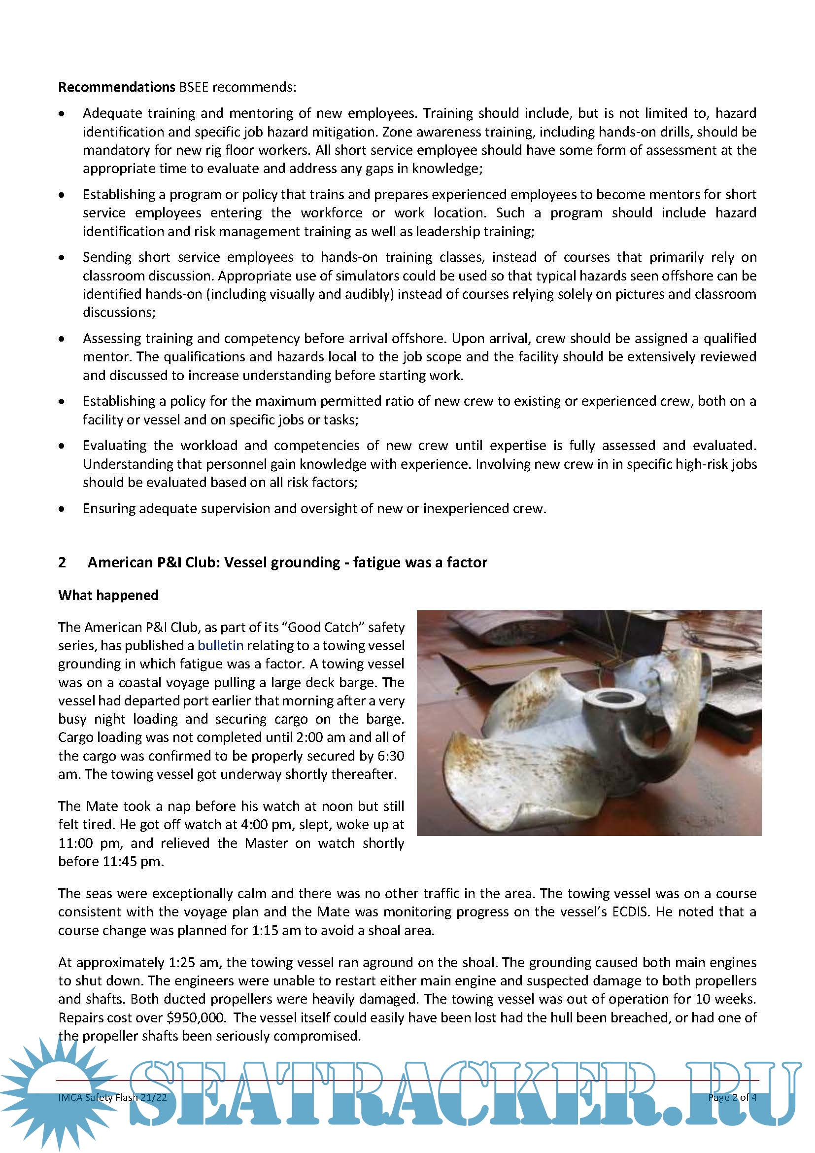 • American P&I Club: Vessel grounding - fatigue was a factor
