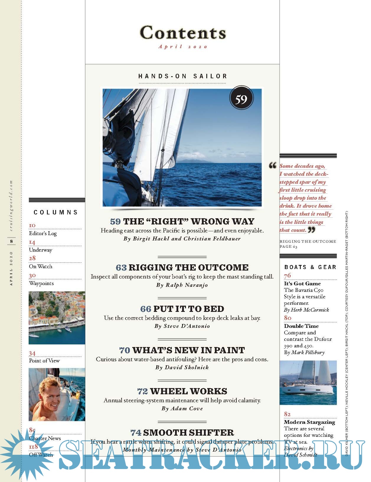 Year: 2020 Language: english Author: Mark Pillsbury - Editor Genre: Periodical (magazine) Publisher: A Bonnier Corporation Company Edition: April 2020 Format: PDF Quality: Photo of pages Pages count: 150 Description: Cruising World is your passport for exploring the world's coastlines and oceans while voyaging under sail. Its contributors inspire and entertain through stories, pictures and videos that underscore the beauty and adventure of sailing, while providing instruction on the disciplines of seamanship, navigation and boat handling.