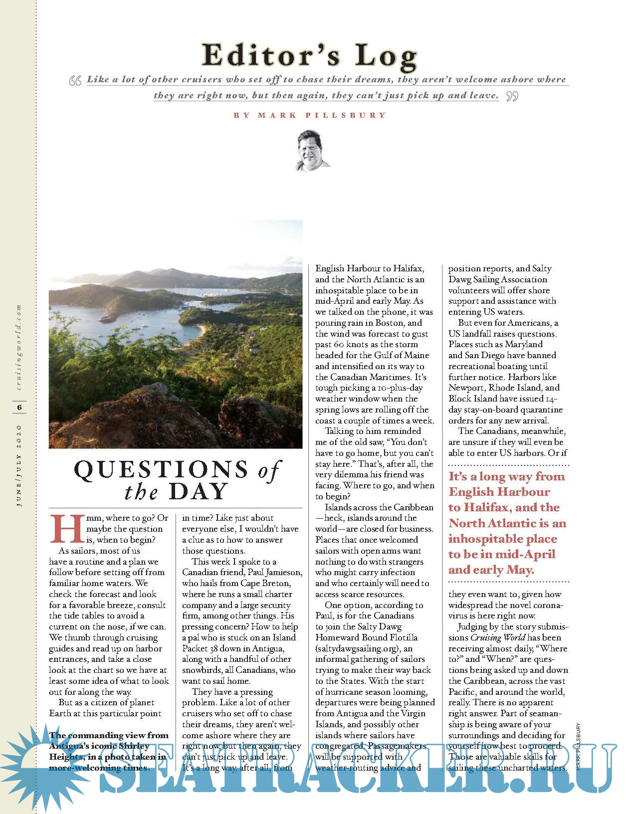 Year: 2020 Language: english Author: Mark Pillsbury - Editor Genre: Periodical (magazine) Publisher: A Bonnier Corporation Company Edition: June, July 2020 Format: PDF Quality: Photo of pages Pages count: 84 Description: Cruising World is your passport for exploring the world's coastlines and oceans while voyaging under sail. Its contributors inspire and entertain through stories, pictures and videos that underscore the beauty and adventure of sailing, while providing instruction on the disciplines of seamanship, navigation and boat handling.