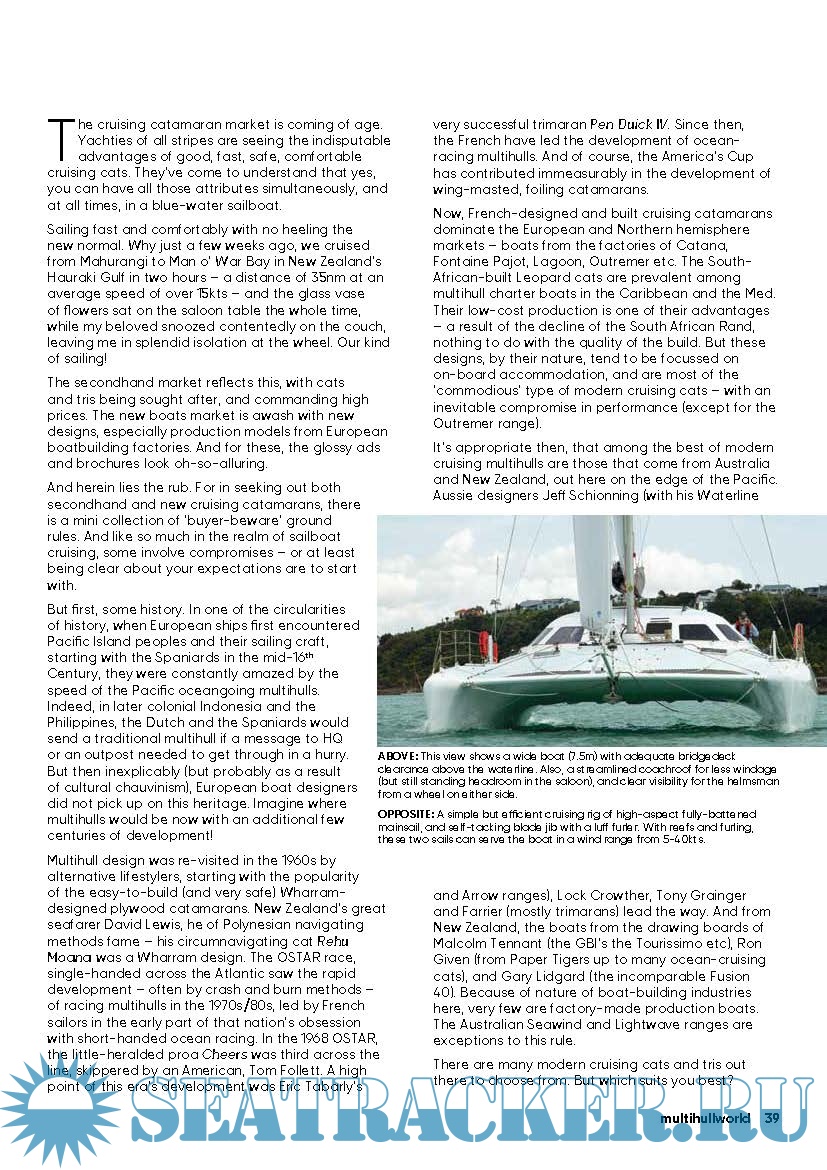 Description: Multihull World is an Australian-based specialist publication devoted to multihull enthusiasts - catamarans and trimarans, offshore, off-the-beach, power, racing and cruising.