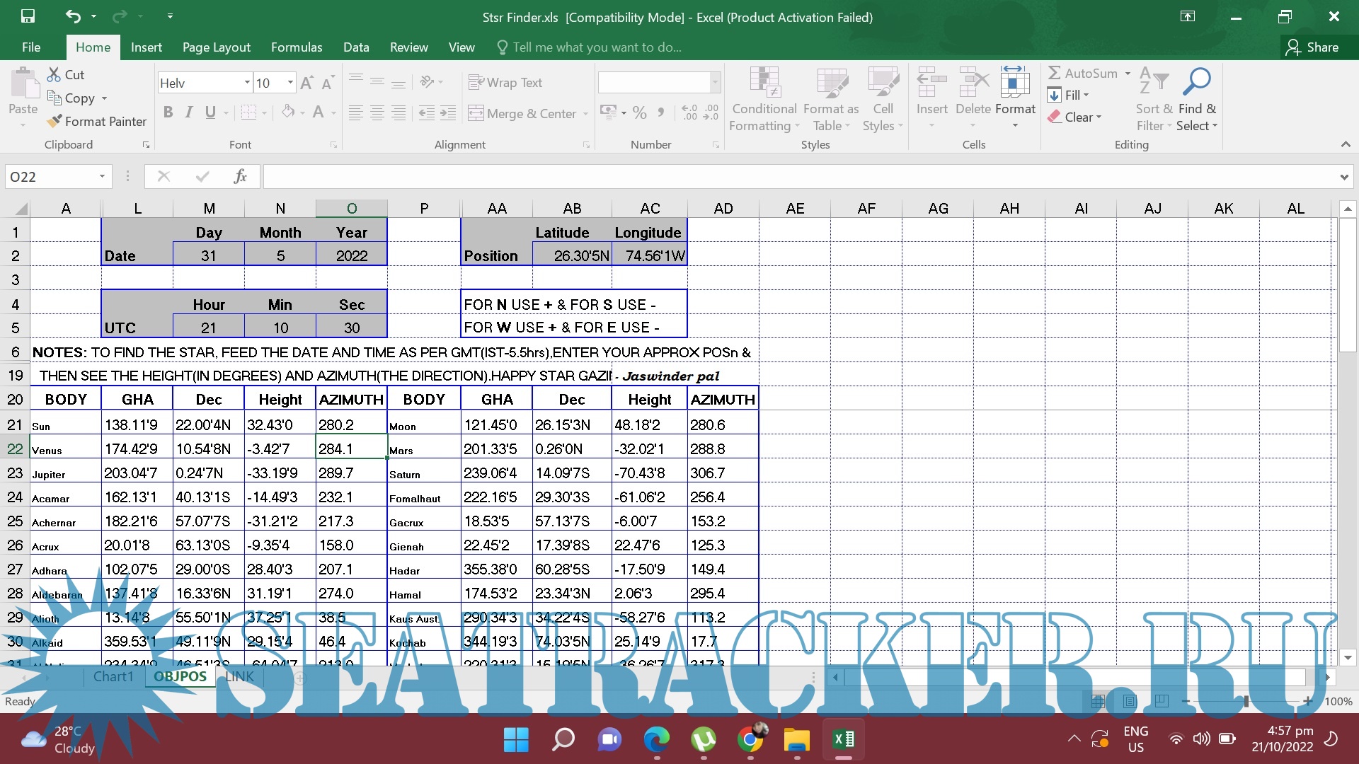 STAR FINDER CALCULATOR excel v.Windows7,8,10 - vincent [2018]