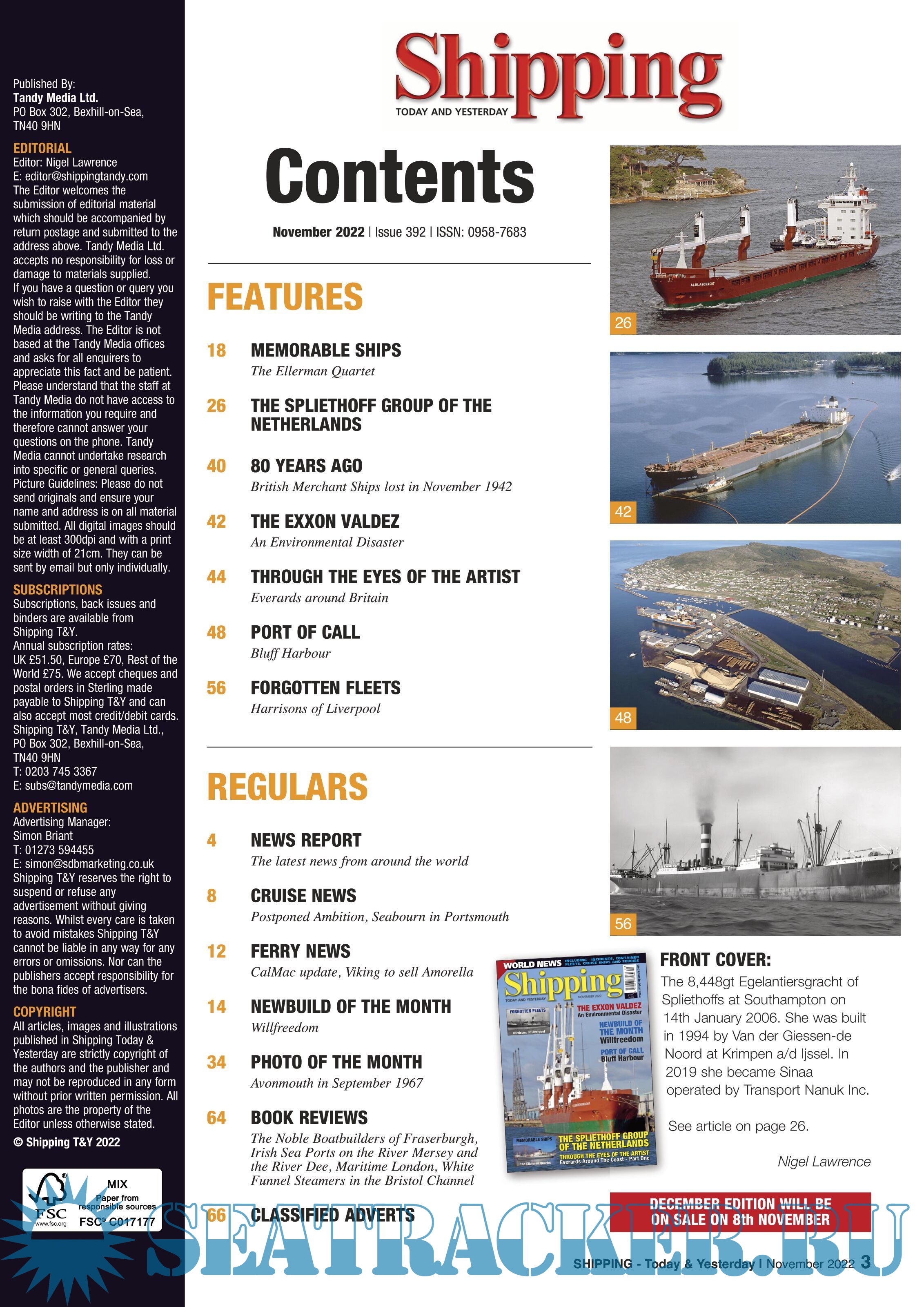 Description: Shipping Today & Yesterday is a specialist magazine for the shipping enthusiast offering up-to-date information, topical and in-depth historical articles.