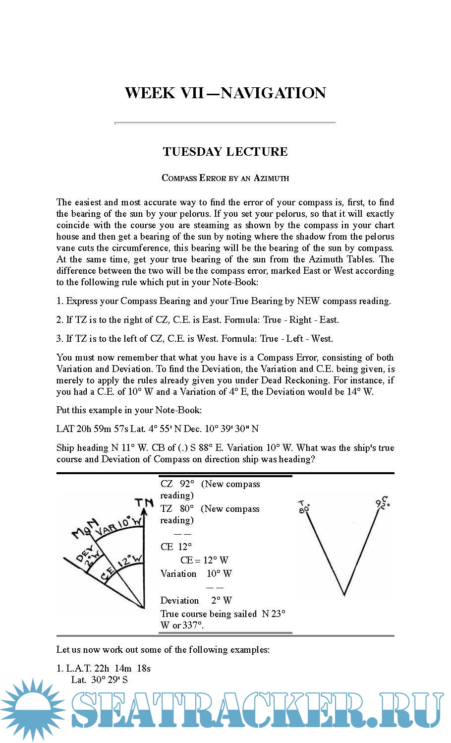 Toward the end of the course a portion of each second period will bedevoted to handling the sextant,