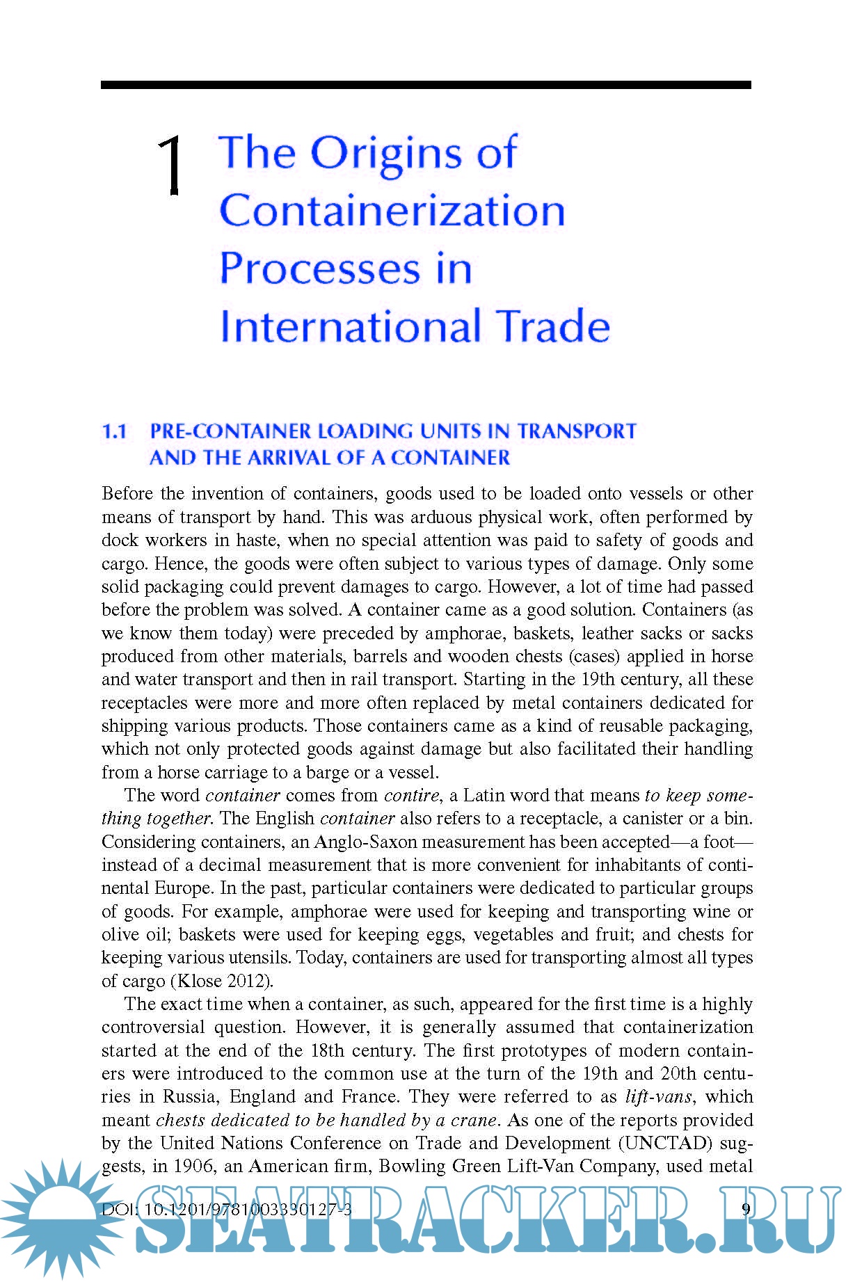 Year: 2023 Language: english Author: Ryszard K. Miler and Others Publisher: CRC Press Edition: 1st Edition ISBN: 9781003330127 Format: PDF Quality: eBook Pages count: 327 Description: Containerization provides optimization of handling processes in terms of intermodality and efficient cargo handling, and maritime transport, in particular, it provides further optimization of shipping processes in terms of volume and distance. Containerization has become the most significant factor stimulating the development of modern global trade. With the progress of globalization taken into account (longer distances and increasing cargo volumes), it can be seen that cargo becomes predestined to be transported by sea, which encourages ship owners to enlarge their fleets of container ships. Containerization in Maritime Transport: Contemporary Trends and Challenges addresses the key challenges to maritime transport and containerization, beginning with economic and managerial factors, through organizational, technical, operational, information and IT challenges, and ending with ecological challenges—ideally to lessen the environmental impacts of maritime transport. Features: • Discusses the latest technological advances in shipping, including augmented reality (AR), virtual reality (VR), artificial intelligence (AI), 5G networks, smart camera and computer vision systems, and digital twin technology. • Presents ecological considerations and solutions that are indispensable to develop efficient and safe green supply chains. • Examines the economic aspects of shipping with regard to transport and container handling costs in international trade.