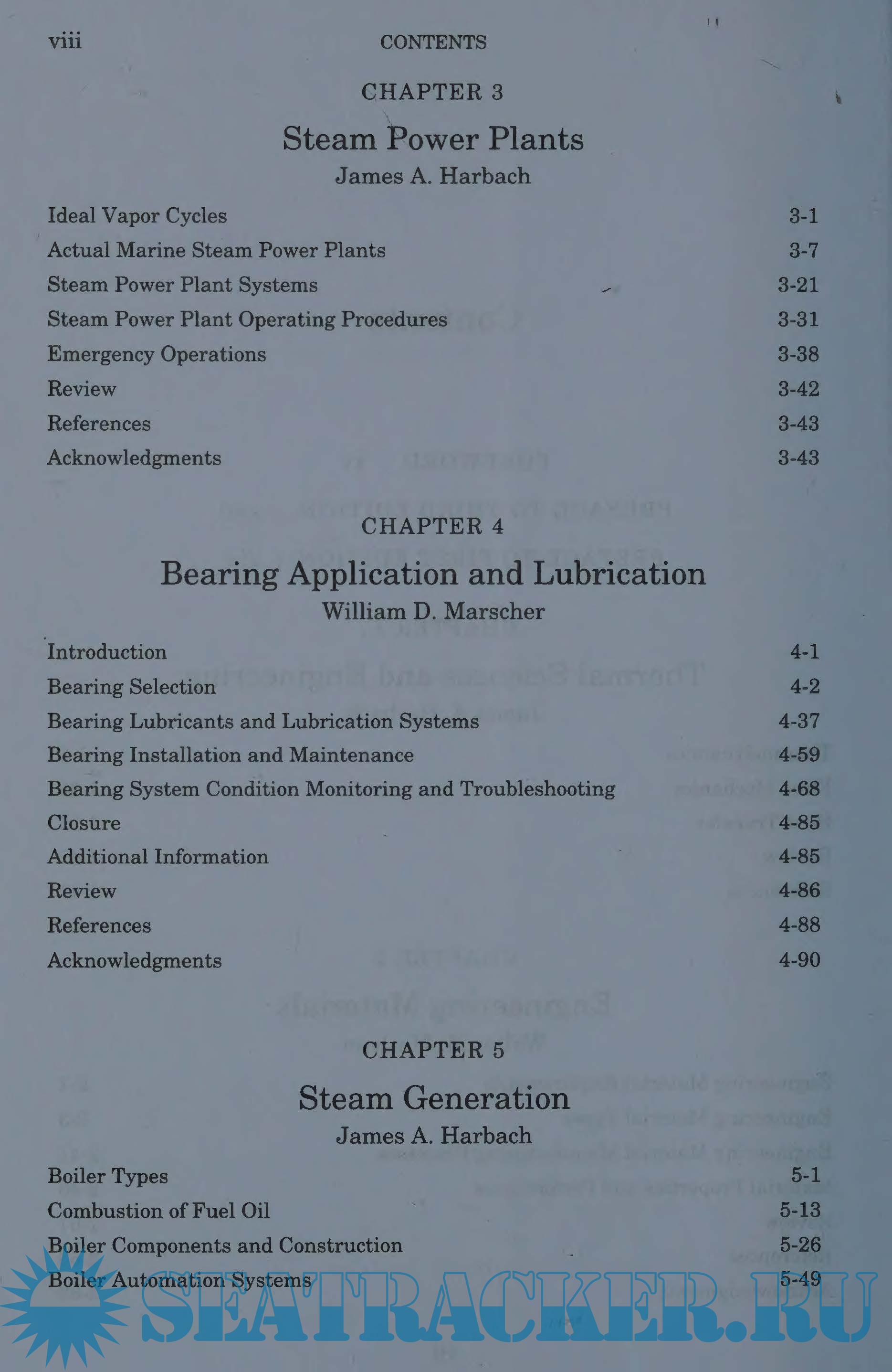 Year: 2010 Language: english Author: Everett C. Hunt Genre: Manual Publisher: Cornell Maritime Press Edition: Reprint 2010 ISBN: 9780870334962 Format: PDF Quality: Photo of pages Pages count: 1280 Description: This book is designed to serve as a textbook for students and a reference for today’s engineering officers, port engineers, superintendent engineers, and other maritime professionals. Steam turbine propulsion systems are included, but the coverage has been reduced in recognition of the popularity of main propulsion diesel engines, covered in volume 2, and the anticipated increasing applications of aeroderivative gas turbines. Reciprocating steam engines have been eliminated. Pumps, pumping systems, and heat exchangers are given extensive coverage. Computer applications for machinery and system management are presented, including an entire chapter on maintenance management. Relevant material on international and national laws, classification society requirements, and standards, such as ISO 9000 series and the ISM code, are included in the text. The characteristics of fuels are presented along with a discussion of fuel testing and analysis, and a section on bunkering. A chapter on safety and management discusses shipboard engineering operations, shipyard repair planning and economics, and safety management. Each chapter includes review questions and references for additional study. : Previous Release: