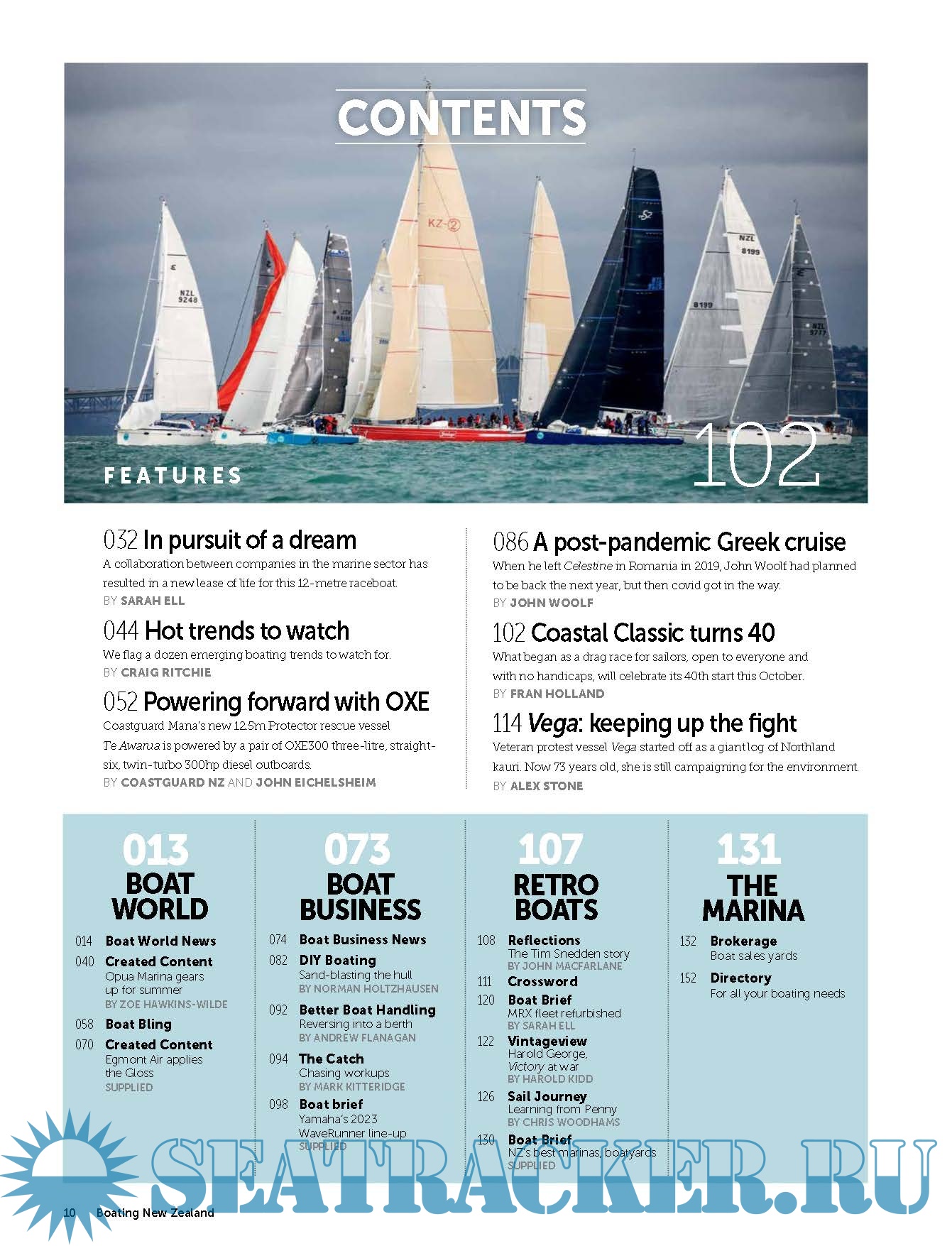 Description: Boating NZ is New Zealand's premier marine title devoted to putting its readers behind the wheel of the latest trailerboats, yachts and launches to hit the market. It inspires with practical content and cruising adventures, leads the fleet with its racing coverage and is on the pulse of the latest maritime news and innovation.