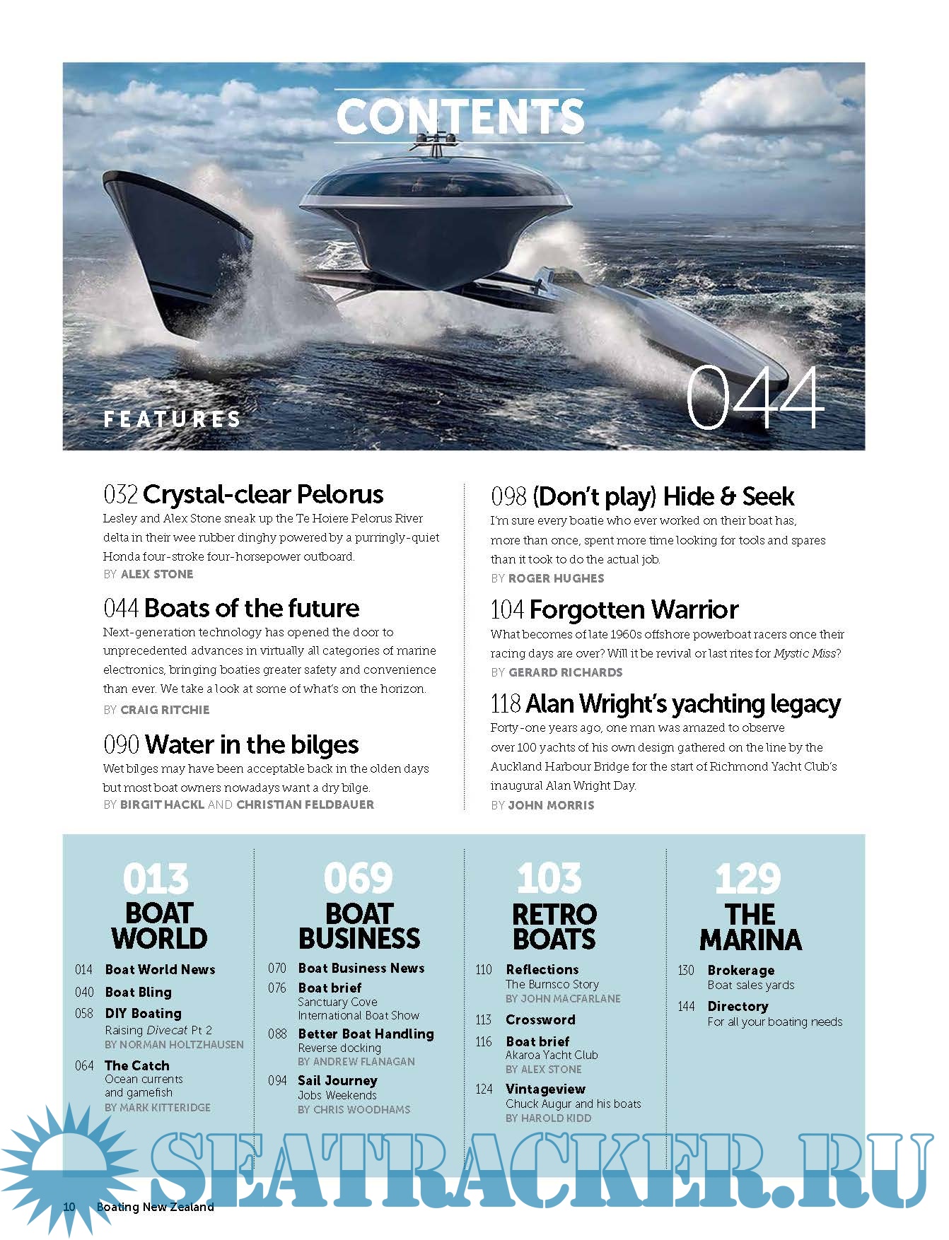 Description: Boating NZ is New Zealand's premier marine title devoted to putting its readers behind the wheel of the latest trailerboats, yachts and launches to hit the market. It inspires with practical content and cruising adventures, leads the fleet with its racing coverage and is on the pulse of the latest maritime news and innovation.