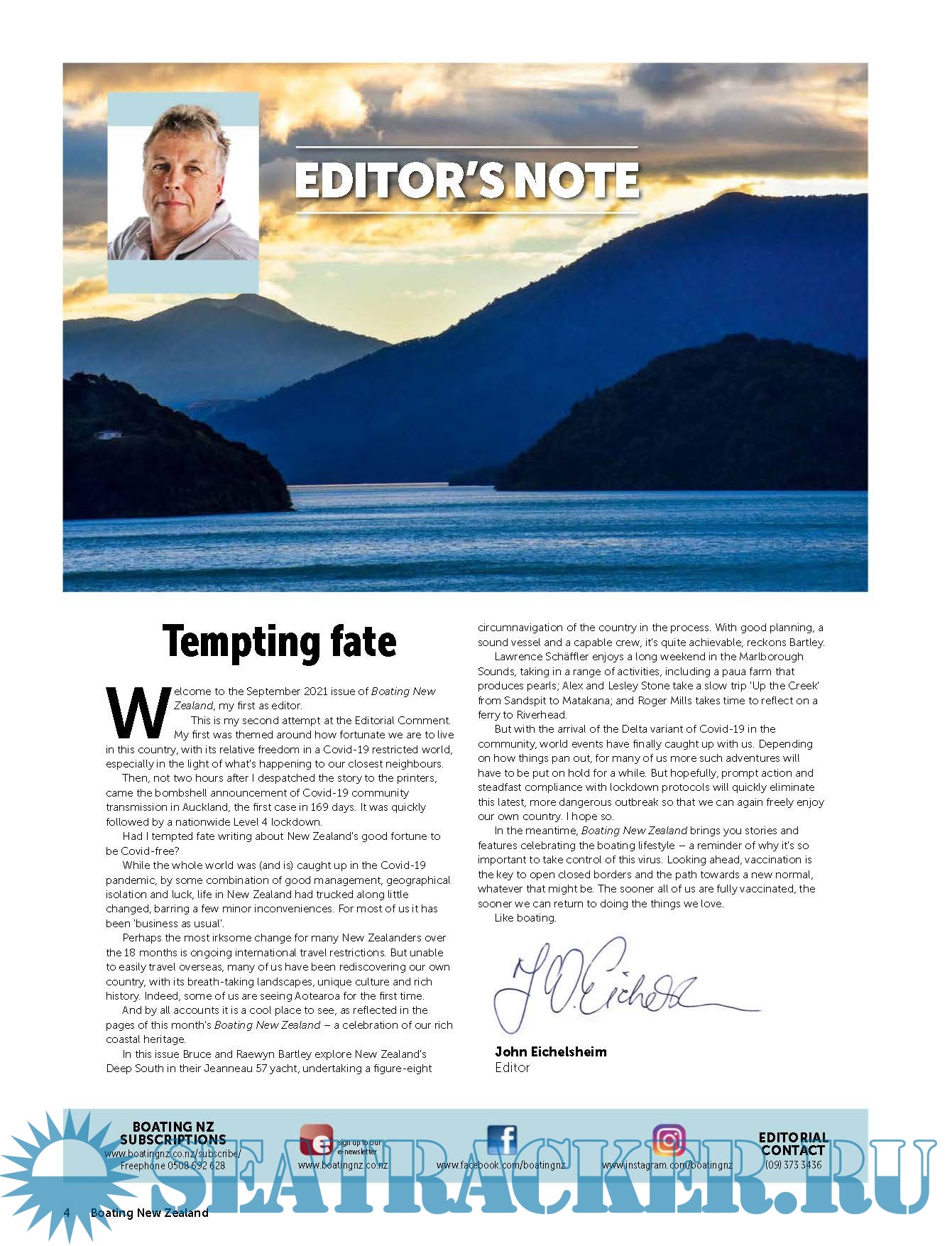 Year: 2021 Language: english Author: John Eichelsheim - Editor Genre: Periodical (magazine) Publisher: Tim Porter Edition: September 2021 Format: PDF Quality: Photo of pages Pages count: 164 Description: Boating NZ is New Zealand's premier marine title devoted to putting its readers behind the wheel of the latest trailerboats, yachts and launches to hit the market. It inspires with practical content and cruising adventures, leads the fleet with its racing coverage and is on the pulse of the latest maritime news and innovation.