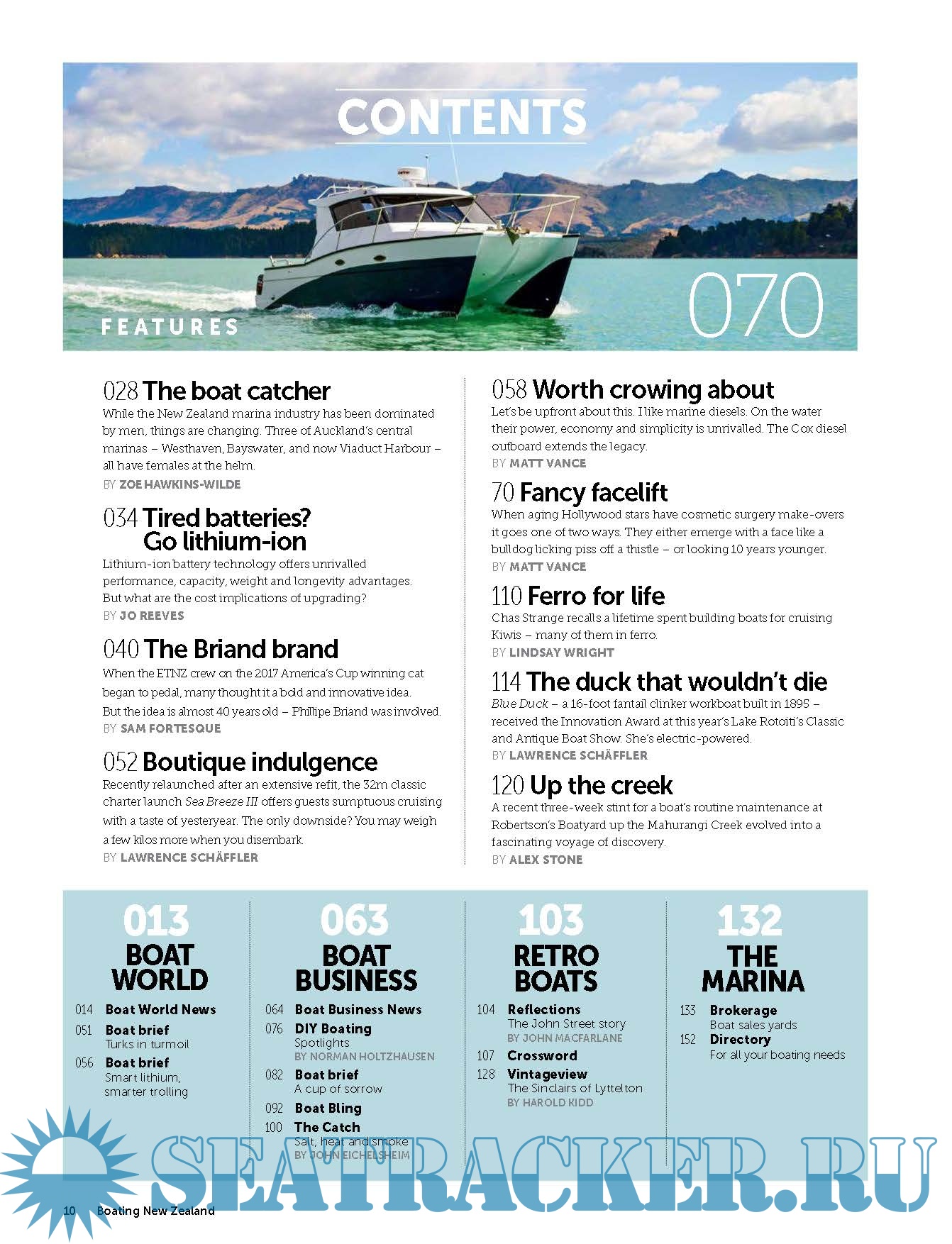 Description: Boating NZ is New Zealand's premier marine title devoted to putting its readers behind the wheel of the latest trailerboats, yachts and launches to hit the market. It inspires with practical content and cruising adventures, leads the fleet with its racing coverage and is on the pulse of the latest maritime news and innovation.
