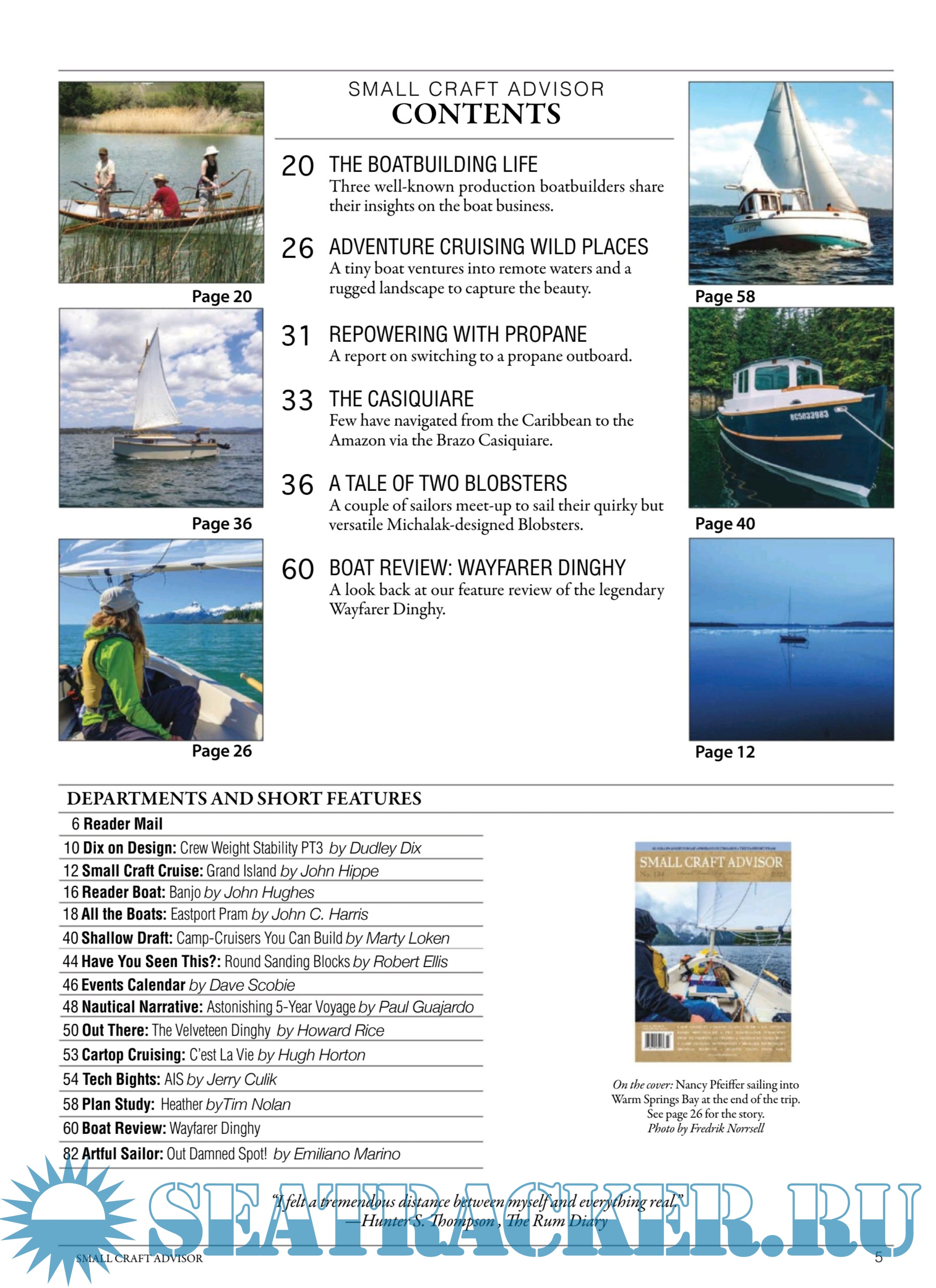 Year: 2022 Language: english Author: Small Craft Advisor Inc. Genre: Periodical (magazine) Publisher: Small Craft Advisor Inc. Edition: March April 2022 Format: PDF Quality: Photo of pages Pages count: 84 Description: Small Craft Advisor Magazine