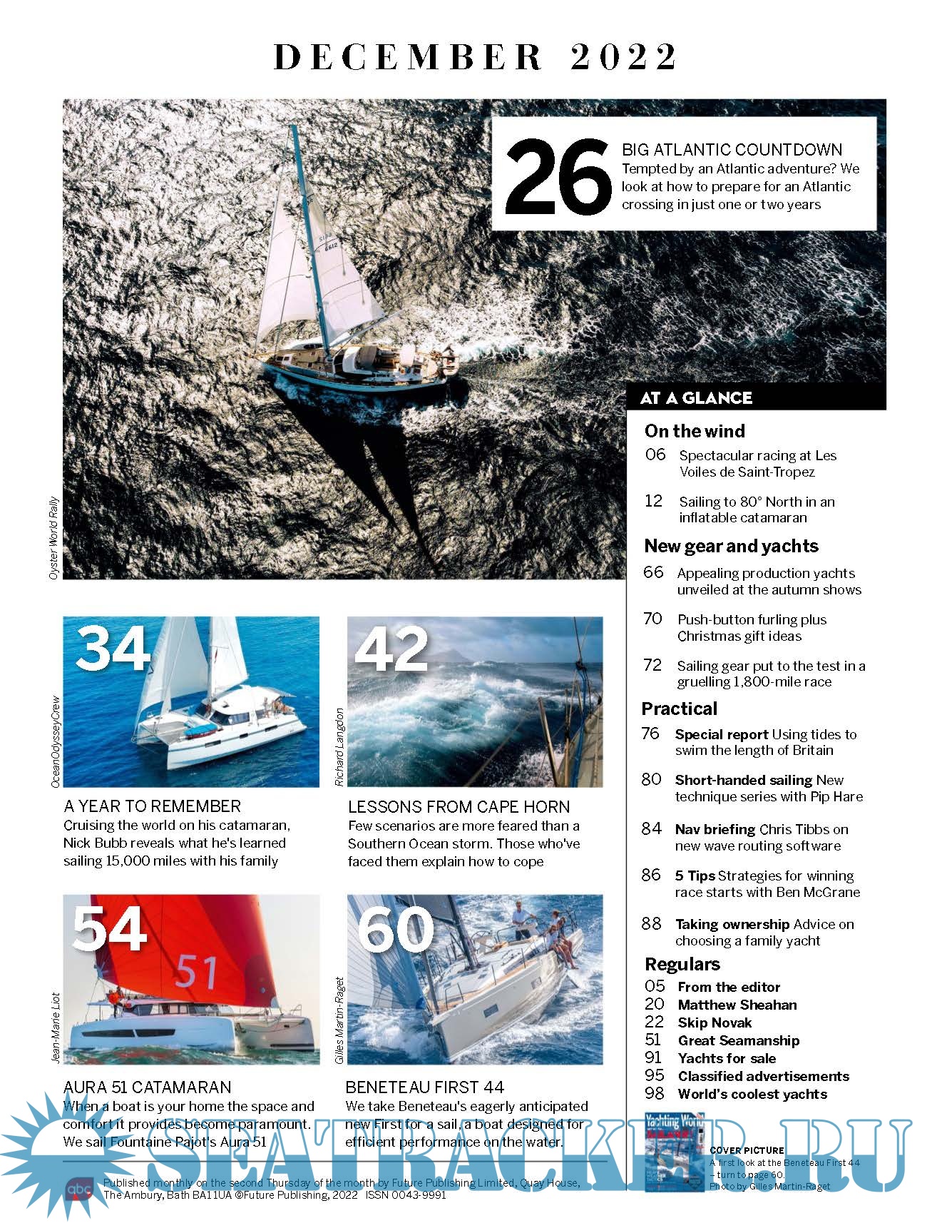 Year: 2022 Language: english Author: Helen Fretter Editor Genre: Periodical (magazine) Publisher: Future Publishing Limited Edition: December 2022 Format: PDF Quality: Photo of pages Pages count: 100 Description: Yachting World has had its finger on the pulse of sailing since 1894 (though some of us joined a little more recently). We reckon we are the most enthusiastic sailing fans in the world: we love boats of all kinds, modern and classic, we like racing and cruising, are fascinated by innovation yet revere tradition, and nothing that floats is too big or too small for our tastes.