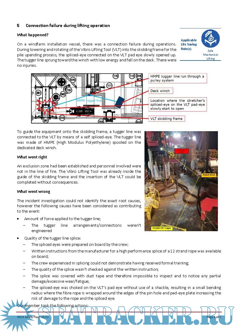Year: 2022 Language: english Author: IMCA Genre: Periodical (magazine) Edition: November, 2022 Format: PDF Quality: eBook Pages count: Multiple Description: The International Marine Contractors Association ( IMCA ) Safety Flashes disseminate importantinformation on incidents and potential hazards and the lessons learnt from them that can help prevent incidentsoccurring elsewhere in the industry.IMCA Safety Flashes and systems for incident reporting and analysis are an important tool for sharing vital information.By publishing them, IMCA helps its members around the world identify potential hazards, share lessons learned and avoid repetition.Safety Flashes should be succinct, specific, factually correct and written in clear language.The Secretariat will assist with this through formatting and checking of the material submitted