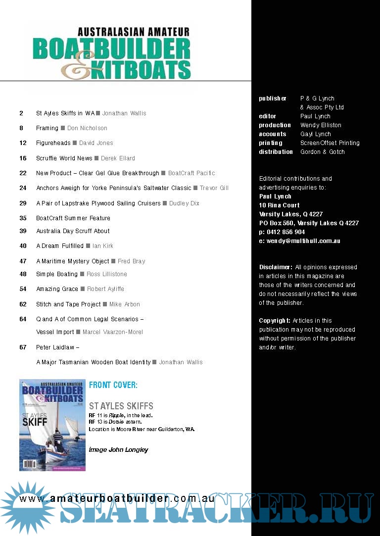 Description: Australialian Amateur Boat Builder Magazine is an Australian-based specialist publication devoted exclusively to Amateur Boat Building enthusiasts