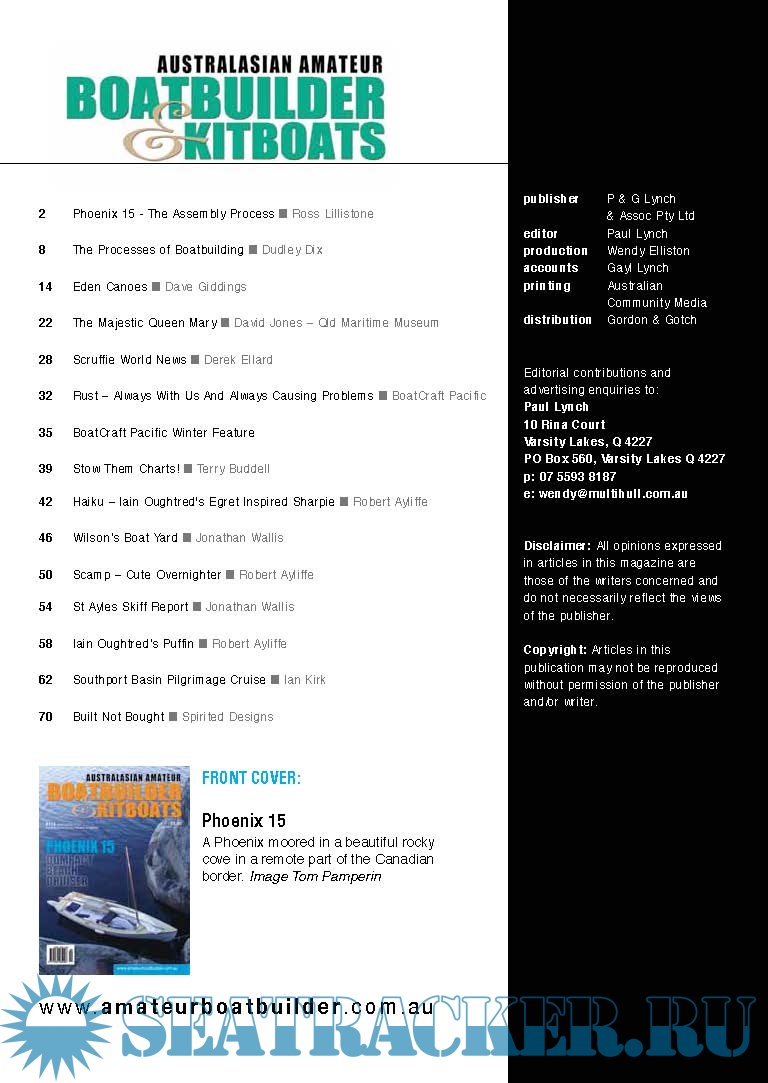 Description: Australialian Amateur Boat Builder Magazine is an Australian-based specialist publication devoted exclusively to Amateur Boat Building enthusiasts