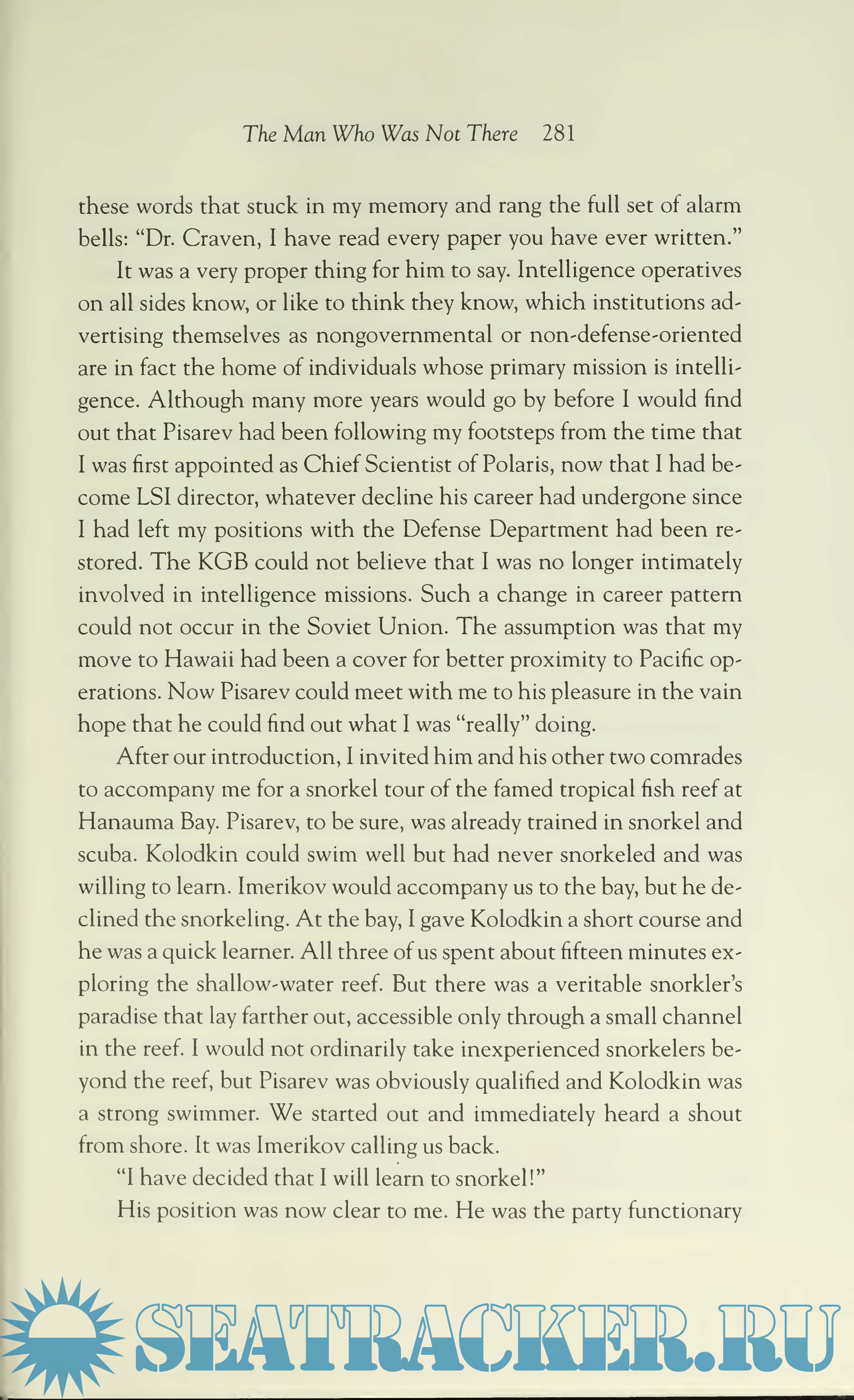 John P. Craven was a key figure in the Cold War beneath the sea. As chief scientist of the Navy's Special Projects Office, which supervised the Polaris missile system, then later as head of the Deep Submergence Systems Project (DSSP) and the Deep Submergence Rescue Vehicle program (DSRV), both of which engaged in a variety of clandestine undersea projects, he was intimately involved with planning and executing America's submarine-based nuclear deterrence and submarine-based espionage activities during the height of the Cold War. Craven was considered so important by the Soviets that they assigned a full-time KGB agent to spy on him.