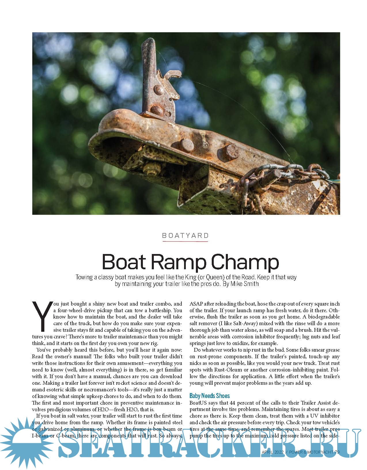 Year: 2022 Language: english Author: : DANIEL HARDING JR. Genre: Periodical (magazine) Publisher: Active Interest Media (Cruz Bay Publishing Inc) Edition: April 2022 Format: PDF Quality: Photo of pages Pages count: 132 Description: Power & Motoryacht is the leading marine magazine for powerboat owners with boats over 25 feet. Each issue is fact-packed with information on boats and boat maintenance, new boating equipment, advice, and filled with beautiful color photography of the latest boats and boating destinations.