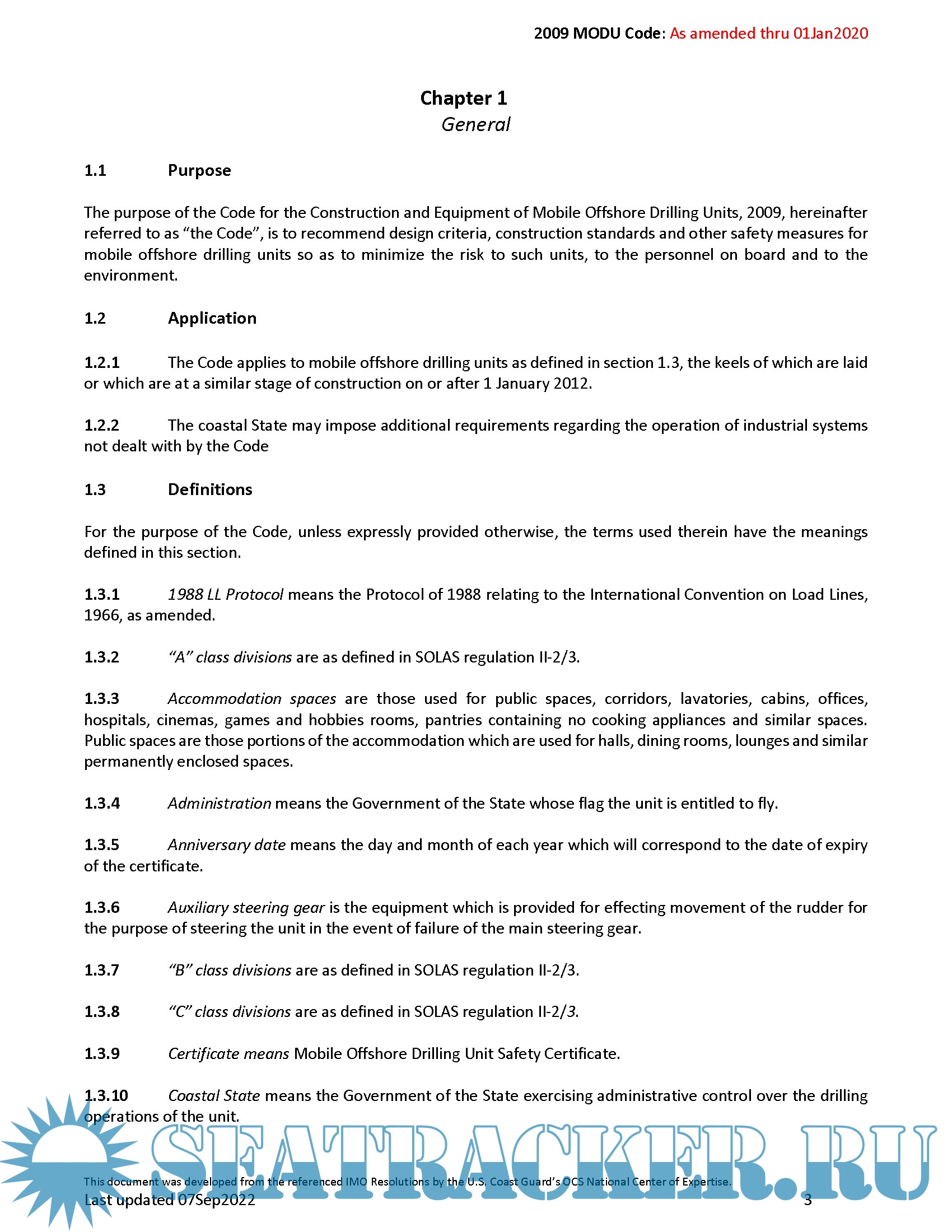 MODU code 2009 CODE FOR THE CONSTRUCTION AND EQUIPMENT OF MOBILE OFFSHORE DRILLING UNITS Edition 2020