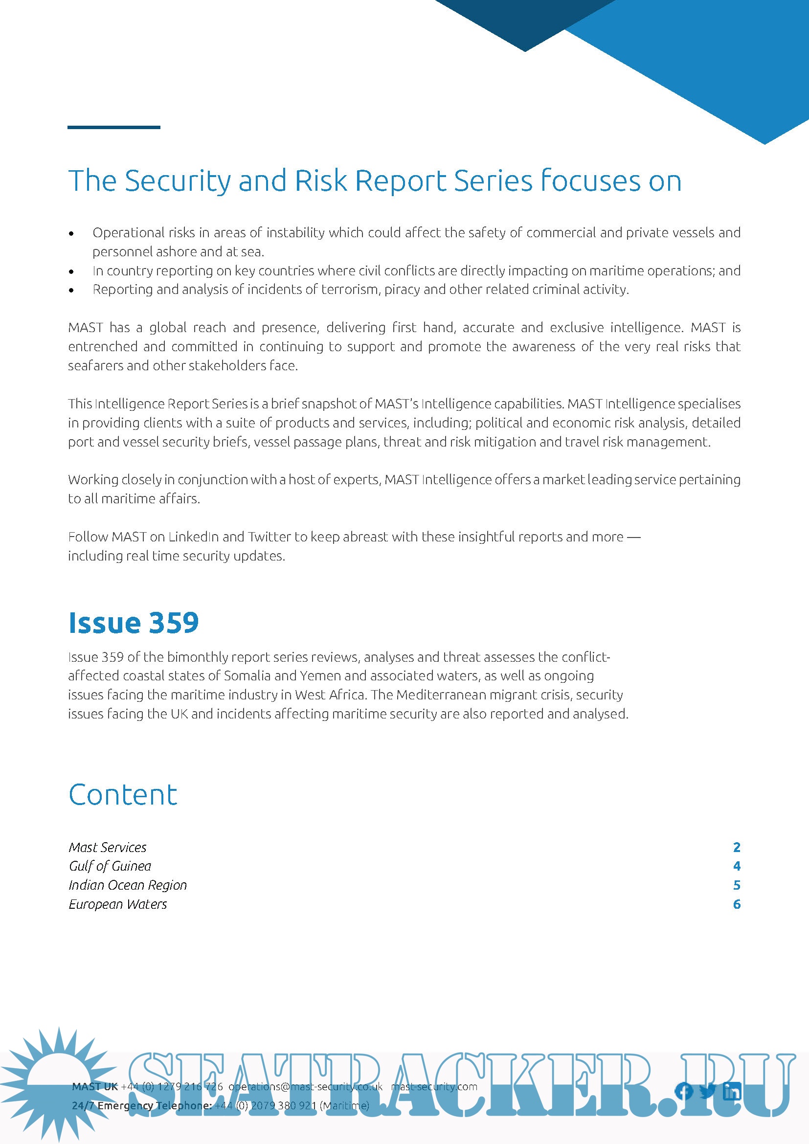 Year: 2022 Language: english Author: Maritime Asset Security and Training (MAST) Genre: Other Format: PDF Quality: eBook Pages count: 28 Description: This report is intended to provide general information about maritime intelligence topics but does not provide individual advice and the creators assume no liability for the accuracy, completeness or adequacy of any information contained herein, or through links you will find in it. Furthermore, using this report or sending MAST emails does not create a service provider- client relationship. It is intended only as an introduction to ideas and concepts only. It should not be treated as a definitive guide, nor should it be considered to cover every area of concern or regarded as an advice. Issues nos. 356-359 November - December, 2022