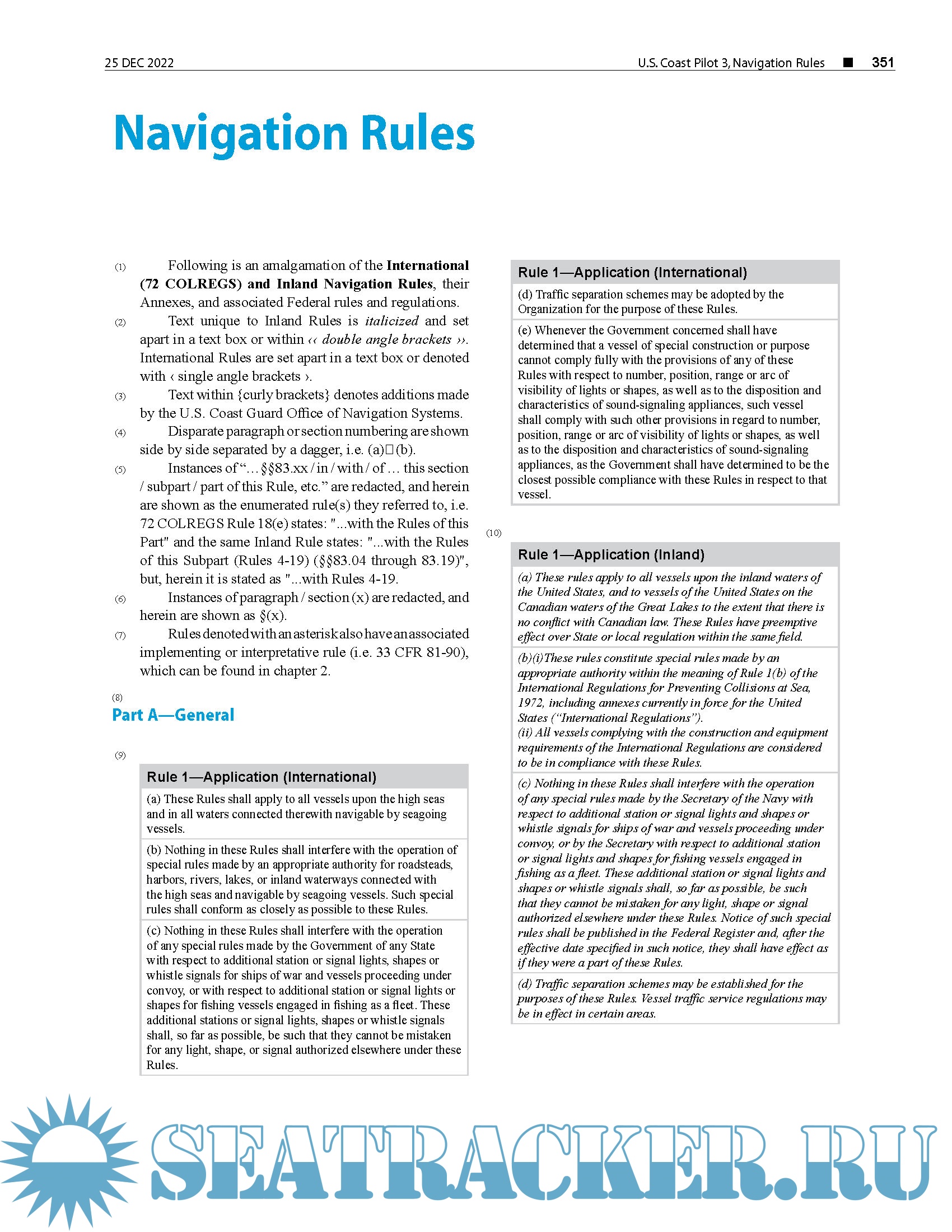 Topics in the Coast Pilot include channel descriptions, anchorages, bridge and cable clearances, currents, tide and water levels, prominent features, pilotage, towage, weather, ice conditions, wharf descriptions, dangers, routes, traffic separation schemes, small-craft facilities, and Federal regulations applicable to navigation.