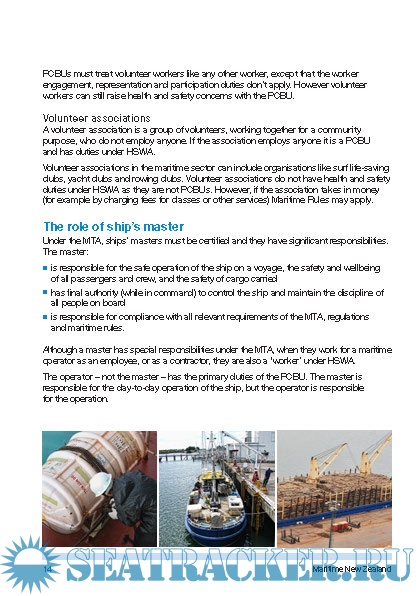 Year: 201x Language: english Author: Maritime New Zeland Genre: Guide Format: PDF Quality: eBook Pages count: 72 Description: This guide provides information about your responsibilities under the Health and Safety at Work Act 2015 (HSWA). This is your essential guide to meeting your health and safety obligations. It is relevant for everyone working in the maritime sector including: -Owners -Operators -Skippers -Crew -Stevedores -Jet boat drivers -Rafting guides -Self-employed crew, including sharefishers -Anyone who employs or contracts crew -Any other person who works on board, or employs or contracts someone to work on board a ship -Designers, manufacturers, importers, suppliers and installers of ships and plant and equipment on ships.