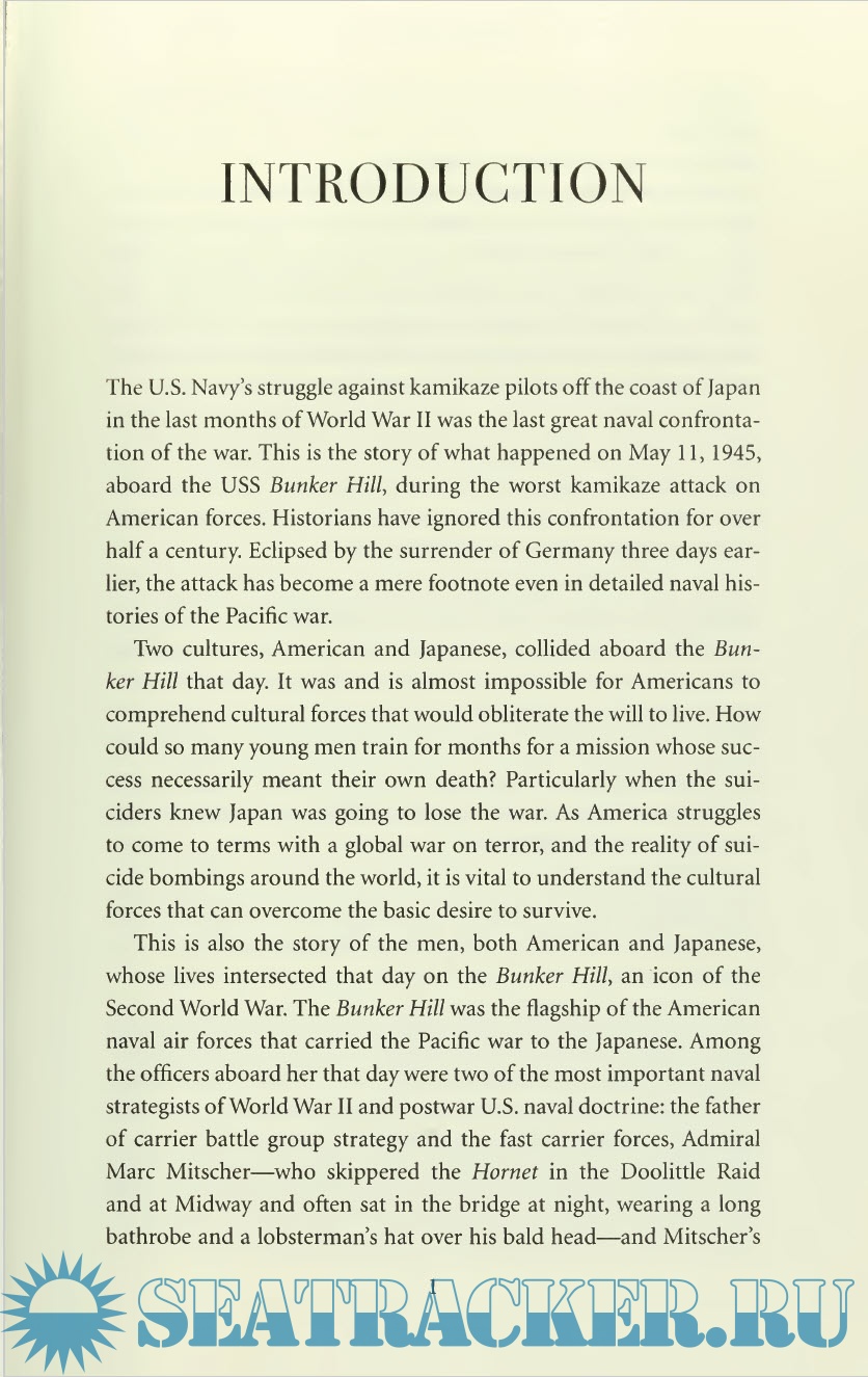 Year: 2008 Language: English Author: Maxwell Taylor Kennedy Genre: Textbook Publisher: Simon & Schuster Edition: First ISBN: 978-0743260800 Format: PDF & EPUB Quality: Scanned pages Pages count: 532 Description: The U.S. aircraft carrier Bunker Hill and the Japanese kamikazes that struck her on May 11, 1945, embodied two fundamentally different approaches not only to war but to life, according to Kennedy. The Bunker Hill manifested American material power, and its civilian sailors reflected the determination of a nation to punish Japan's aggression with total victory. The pilots of the Divine Wind (or kamikaze) , on the other hand, represented a philosophical and spiritual response, an epic of pride, honor and virility. And when the kamikazes struck the Bunker Hill, it seemed for a time that a few determined men could frustrate American power, killing almost 400 Americans and wounding another 250. In what he views as a relevant lesson for the age of terror, Kennedy (Make Gentle the Life of This World) explores how an individual's desire to live can be so successfully suppressed that he will train for certain death. The author combines extensive archival research with interviews of American and Japanese participants in a spellbinding account showing that much more than geopolitics was at stake in the Pacific war