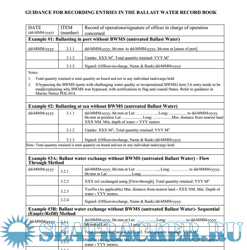 Ballast Water Management Record Book requirements - DBS [2022, PDF]