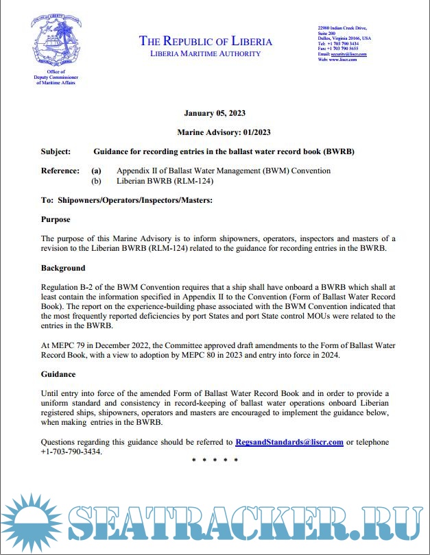 uniform standard and consistency in record-keeping of ballast water operations onboard Liberian