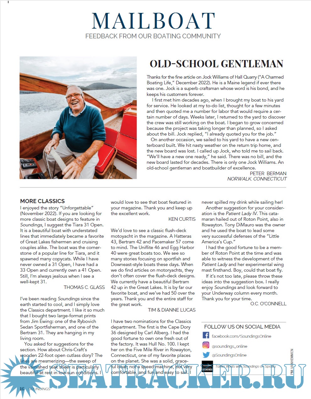 Description: Soundings is the news and feature publication for pleasure boaters.Soundings Magazine entertains and informs a loyal audience of passionate boaters. Our award-winning coverage is designed to inspire and educate our engaged owner/operator audience on the latest developments in boating, while also exploring the heritage, history and passion for our pastime that serious enthusiasts share. SOUNDINGS continues to uphold the highest standards of journalism in all our print and digital offerings.