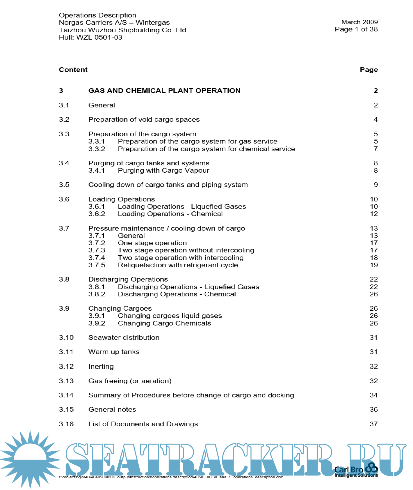 Year: 2009 Language: english Author: Carl Bro Intelligent Solutions Genre: Manual Format: PDF Quality: eBook Pages count: 38 Description: All cargo operations must be conducted in accordance with the procedures described in this Manual and Owner's standing instructions in respect of safety and cargo care. Industry safety standards must be observed as set out, for example, in the ICS Tanker Safety Guide and SIGTTO's "Liquefied Gas Handling Principles". It is the Master's duty to ascertain all relevant safety regulations in respect of the particular cargo to be carried and the existence of any specific local or national requirements applicable to the ship. Furthermore it is the Master's duty to ensure that the relevant Officers are fully aware of any applicable regulations and to ensure that these are observed.