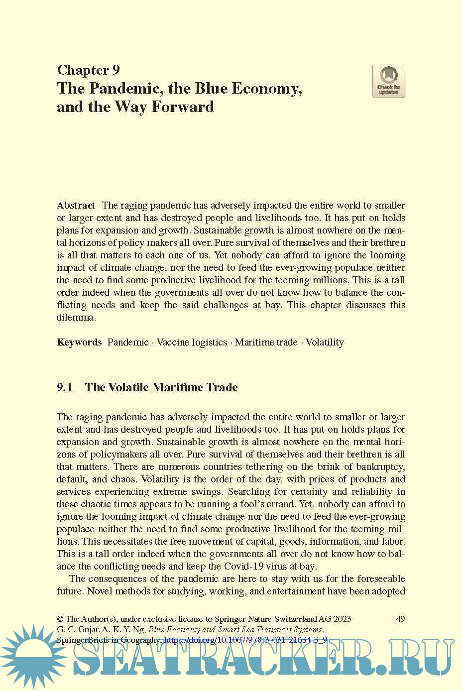 Year: 2023 Language: english Author: Girish Gujar, Adolf Ng Genre: Textbook Publisher: Springer Edition: 1st (January 31, 2023) ISBN: 9783031216336 Format: PDF Quality: eBook Pages count: 61 Description: Focusing on maritime security, this book discusses Blue Economy and Smart sea transport systems in the context of the Indian Ocean rim countries and the multifaceted challenges that they are likely to face while attempting to develop such systems. It introduces Blue Economy as a concept with an emphasis on lower costs, reduced waste, greater efficiency, and value addition in all services associated with the near and deep oceans, with the establishment of Smart sea transport systems as the adaptive response in a global trade system. It highlights the roles of maritime security in politics, economics, and environmental management issues that constitute the challenges of achieving such goals. In this regard, the authors approach the issues from the institutional perspective to examine ways in which relevant transport and supply chain stakeholders can collaborate to build secure, resilient global systems of maritime trade. This book will be of interest to anyone interested in marine policy and global supply chains, especially in maritime security, its impacts and risks on transport and supply chain infrastructures, and the related socioeconomic activities likely to be affected.