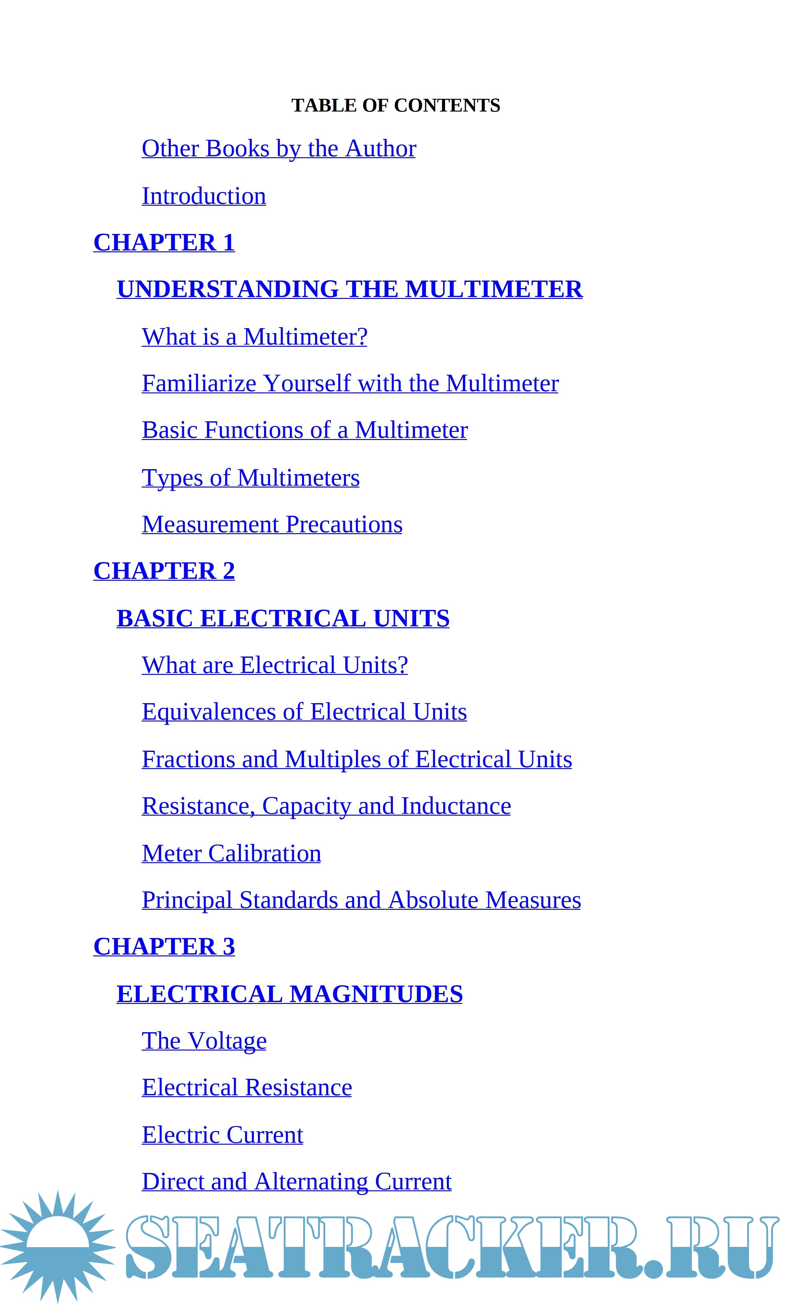 Year: 2022 Language: english Author: Matt Alvin Genre: Practical guide Publisher: Independently published Edition: August 22, 2022 ISBN: 9798847832618 Format: EPUB Quality: eBook Pages count: 166 Print length Description: How To Use A Digital Multimeter: The Practical Guide to Learn How To Use A Digital Multimeter To Measure Current, Voltage, Resistance And Other Quantities, Troubleshoot And Fix Anything Electrical. This guide will walk you through everything about the multimeter, the different parts of the multimeter and how to correctly carry out measurement of different electrical components. In this book, you will discover: What is a multimeter Main parts of a multimeter Basic functions of a multimter Elements of electrical circuit How to measure voltage with the multimeter How to measure current with the multimeter How to measure resistance with the multimter How to measure continuity with the multimeter How to measure temperature with the multimter How to check the value of a resistor How to check the status of a cable And much more..