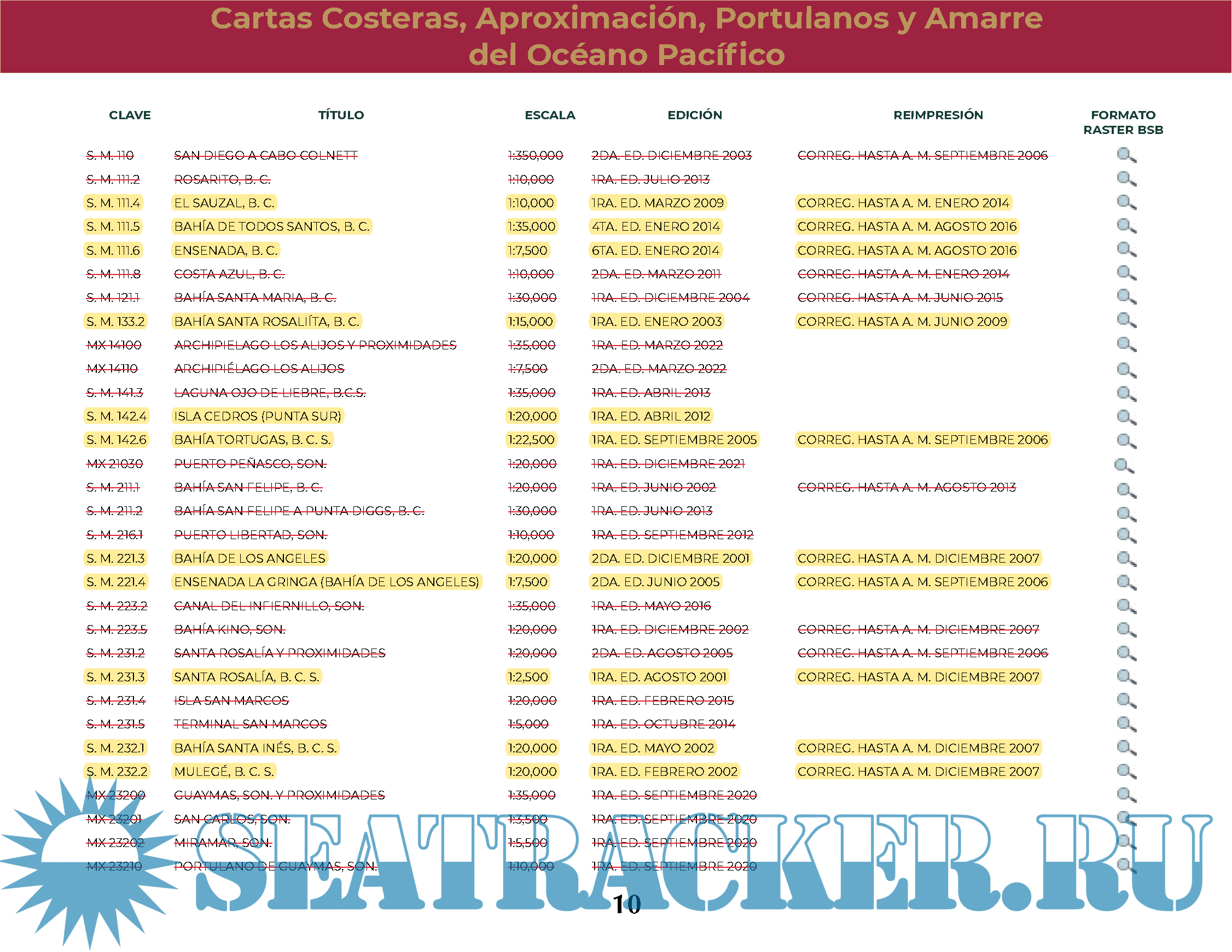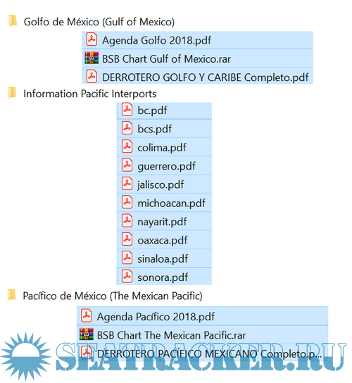 Description: The nautical and cartographic tourist information of the main ports corresponding to the coast of the Gulf of Mexico and the Mexican Pacific, with reference to 53 ports, and the Gulf of Mexico and the Mexican Caribbean with 45 ports including 90 Raster Nautical Chart (BSB/KAP) by Secretaria de Marina (SEMAR) ed. 2018.