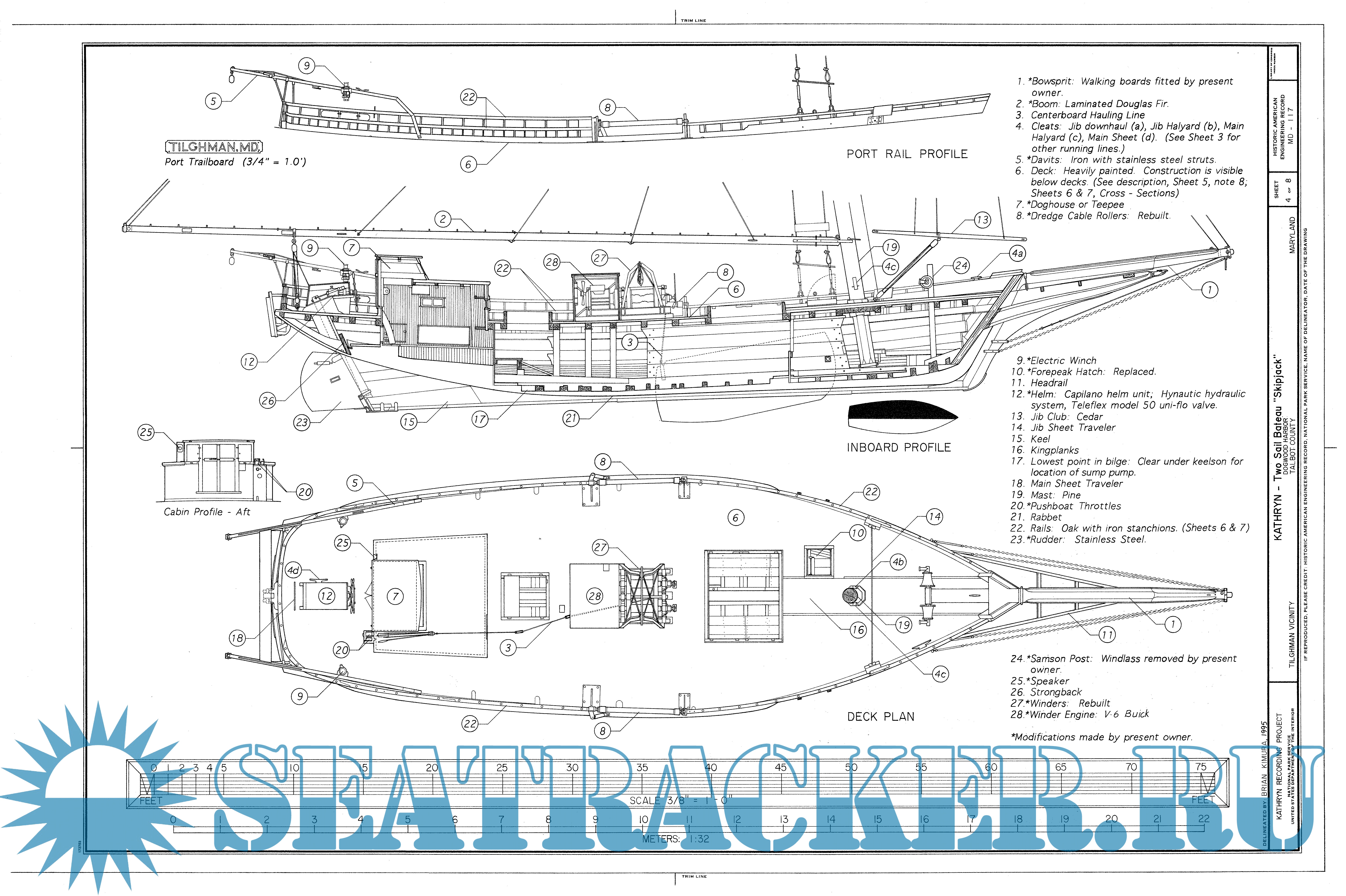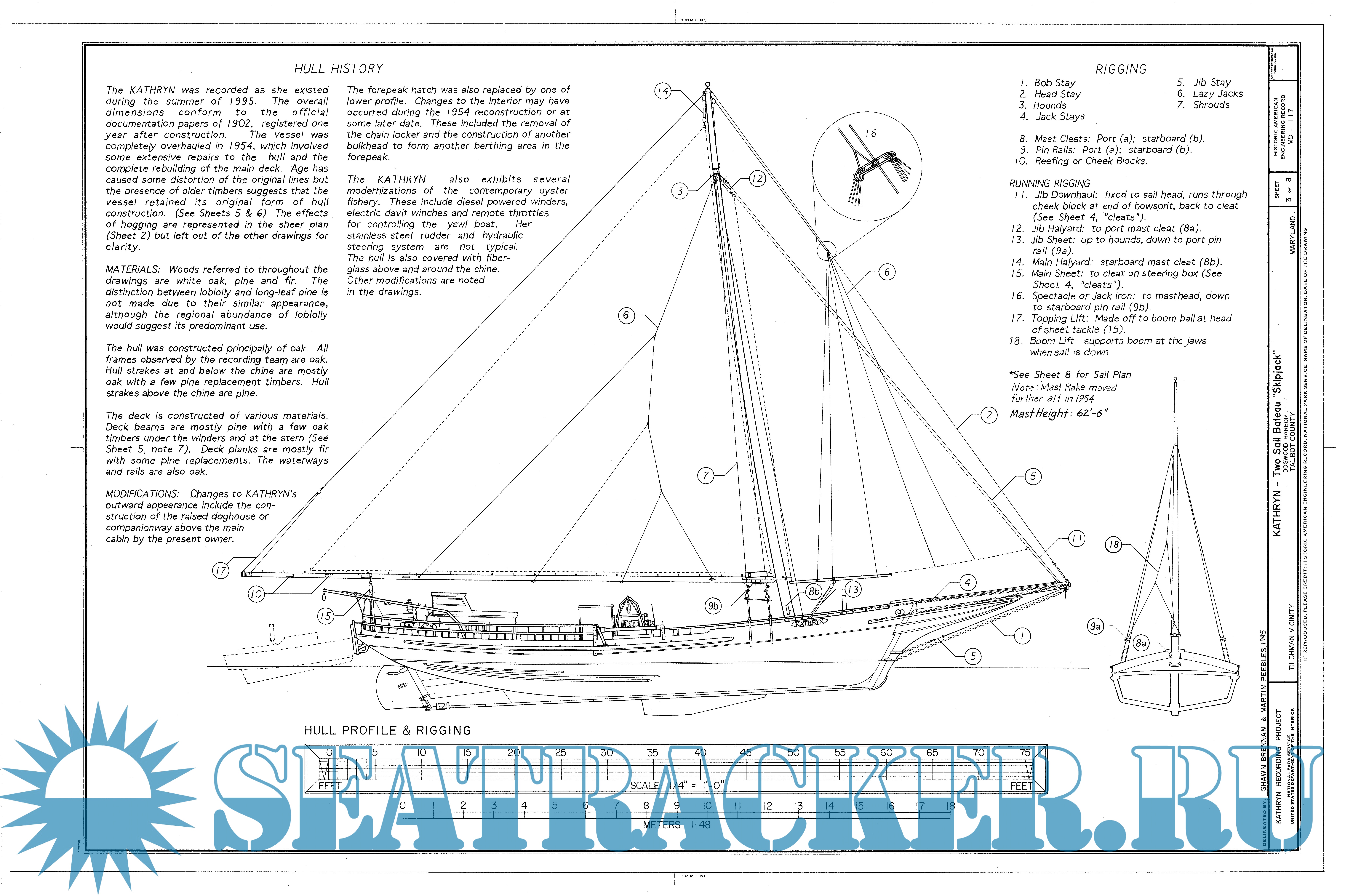 Year: 1995 Language: english Author: Martin Peebles, Brian Kimura Genre: Practical guide Format: JPEG Quality: Scanned pages Pages count: 9 Description: The builder of KATHRYN's yawl is unknown. All of the hull frames, the stem 2nd stern poet are oak- The hull 2nd deck planks are yellow pine. The hull exterior was covered with fiberglass to approximately 1' above the waterline. KATHRYN is an early example of the two-sail bateau, or "skipjack," an oyster dredging vessel that appeared in numbers on the Chesapeake Bay in the late 1890's. Skipjacks were cheaper and easier to build than the pungies, bugeyes, and sloops that were previously built for dredging oysters on the Chesapeake. In the twentieth century, skipjacks became the dominant vessel type in the Maryland oyster fishery. Maryland law restricted the use of power vessels for oyster dredging, which has kept skipjacks active in the fishery to the present day. The Maryland skipjacks are today the only fleet of commercial fishing vessels still working under sail. The presence of oyster diseases, particularly M5X (Multinucleate Sphere Unknown) and the fungus Dermo, have wiped out many of the once abundant oyster beds on the Chesapeake Bay. These diseases are threatening the entire oyster fishery and may force the few remaining skipjacks out of the industry.