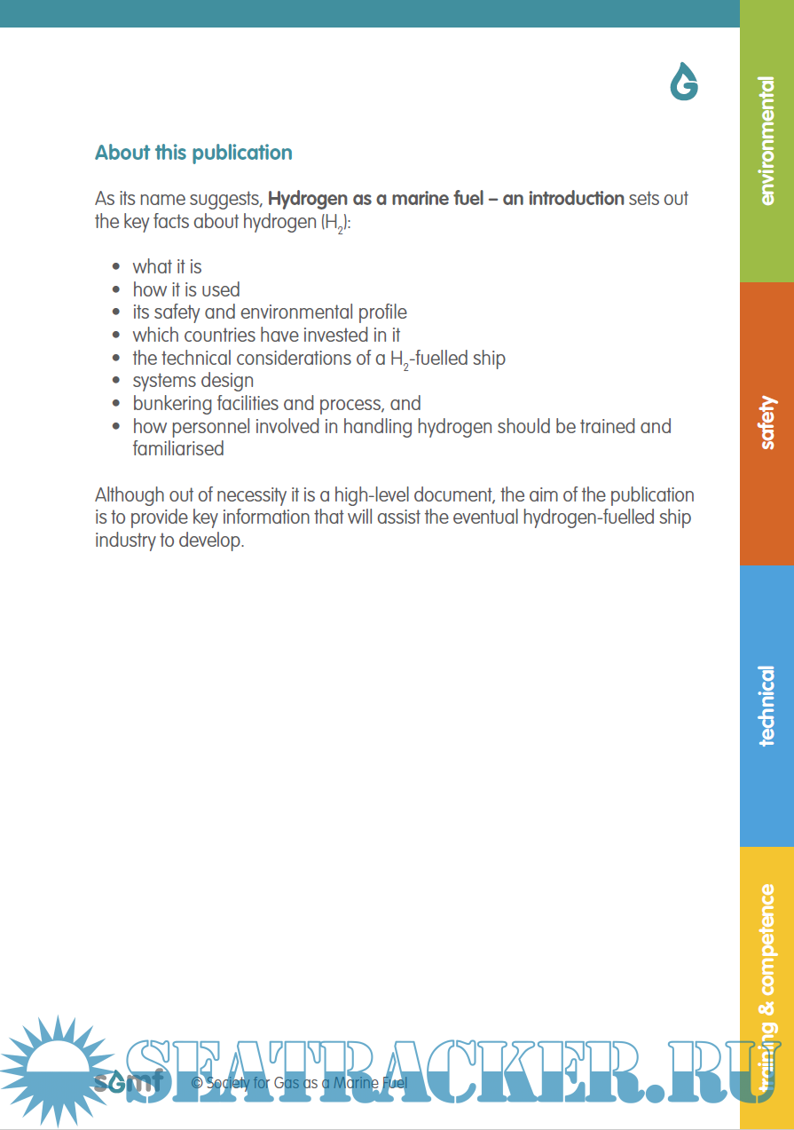 Although out of necessity it is a high-level document, the aim of the publicationis to provide key information that will assist the eventual hydrogen-fuelled shipindustry to develop.
