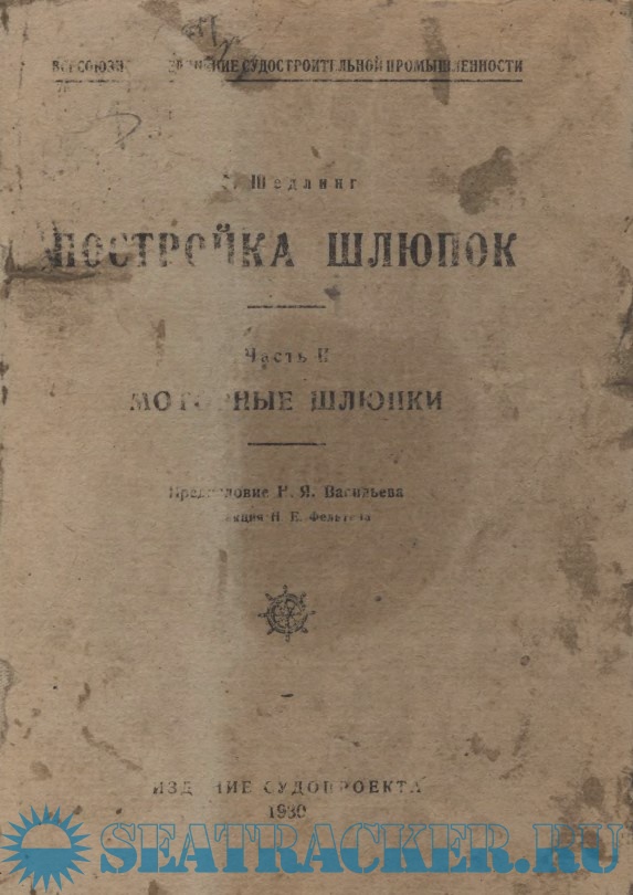 Выпуская настоящий труд Ф. М. Шедлинга, являющийся первым серьезным трудом по вопросу постройки моторных шлюпок на русском языке, Судопроект делает попытку, хоть до некоторой степени, заполнить существующий пробел и помочь работникам на местах ориентироваться в выборе тех или иных типов маломерных судов.
